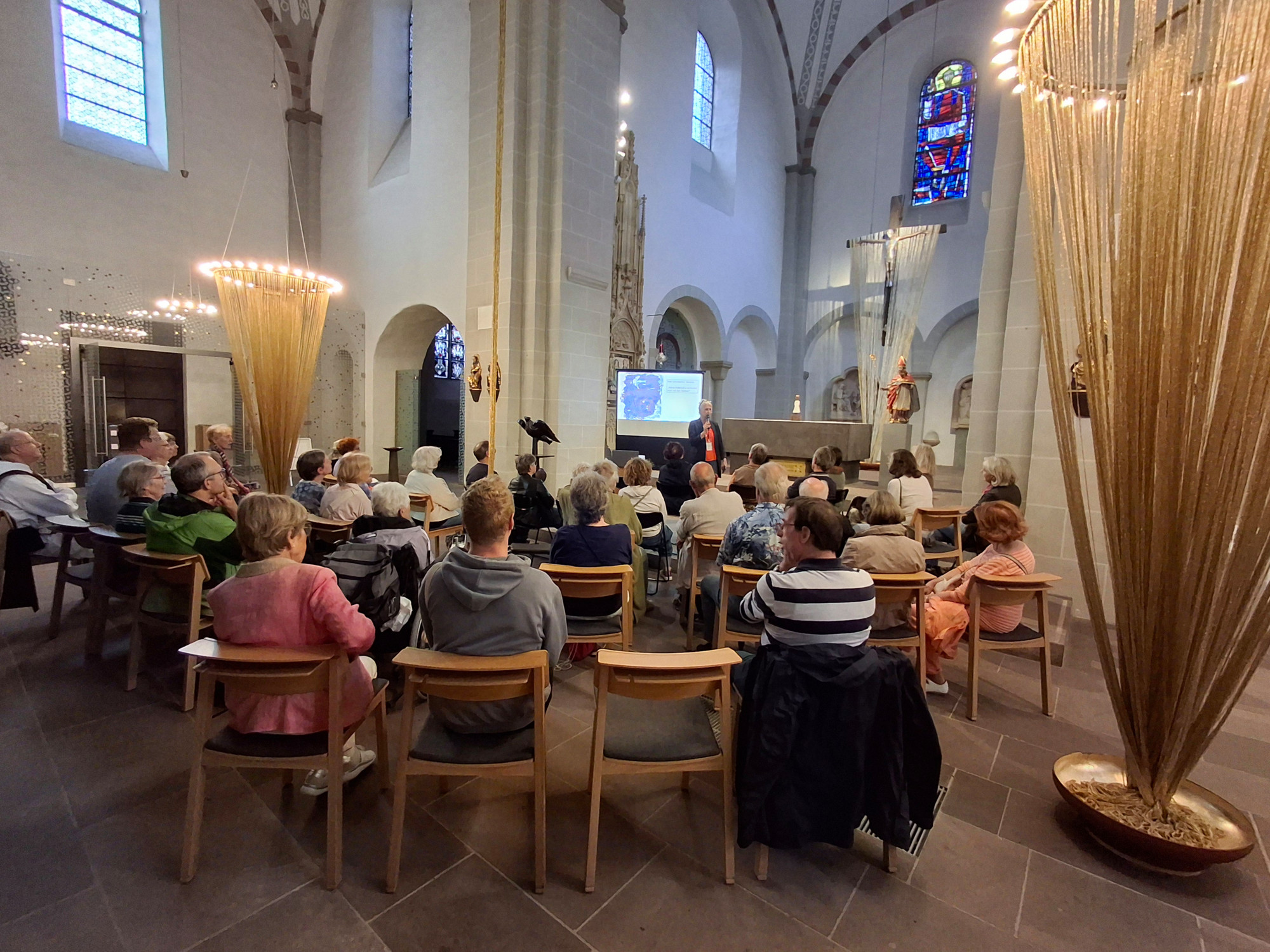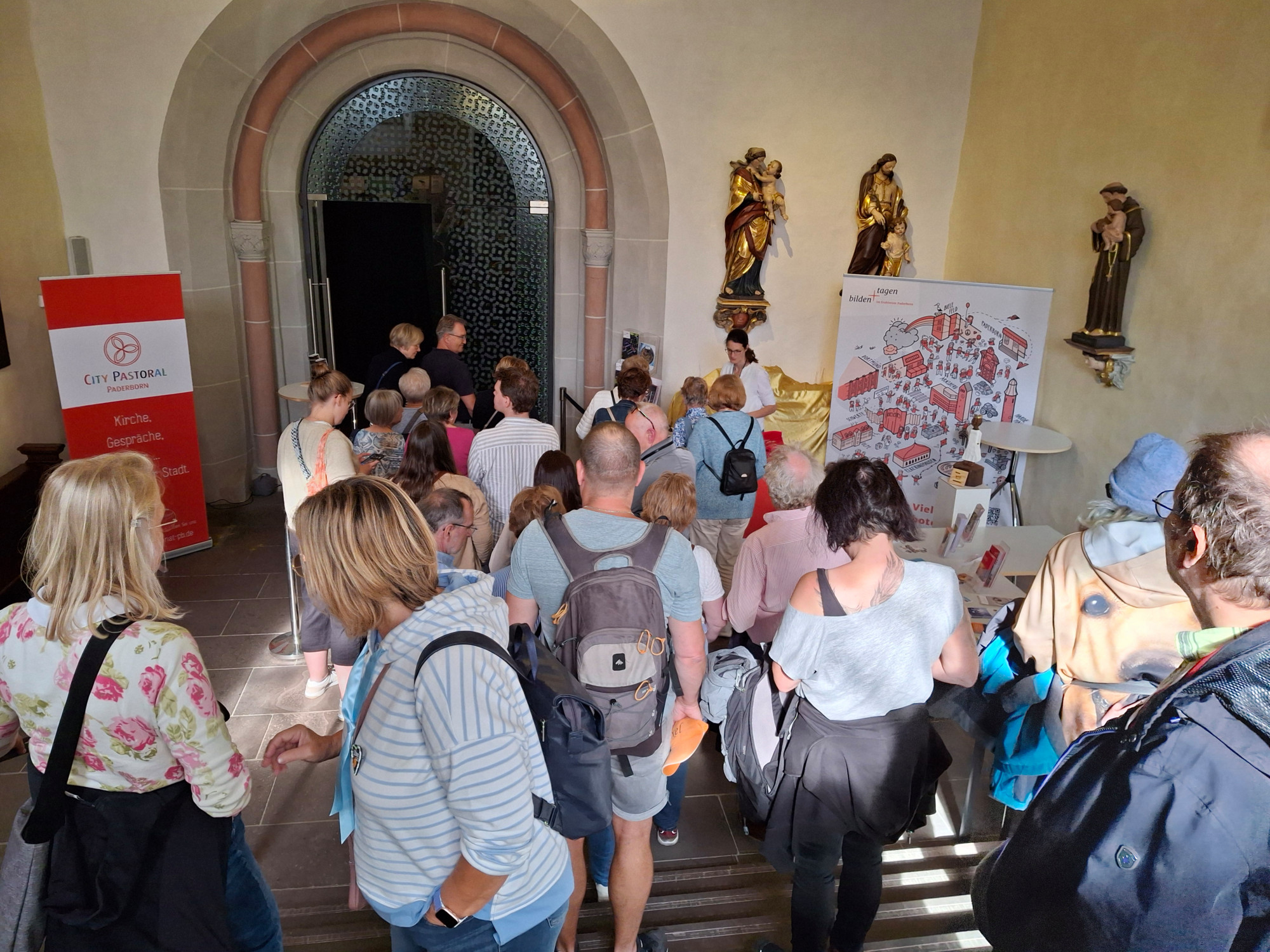 Neben der Ausstellung gab es noch Mittagsimpulse, einen Kunstvortrag, ein Konzert, eine Lesung und einen Kabarettabend. Dazu zahlreiche Angebote im Eingangsbereich, wie zum Beispiel das Pflanzen von Sonnenblumen oder eine Aktion zur Menschenwürde. „Es war beeindruckend, jeden Tag vom 27. Juli bis zum 2. August bis zu 1.800 Menschen begrüßen zu dürfen, wirklich himmlisch berührt waren alle, die uns unterstützt haben, ob ehrenamtlich oder hauptamtlich, hier noch mal ein herzliches Dankeschön an alle Mitwirkenden“, so das Organisationsteam.