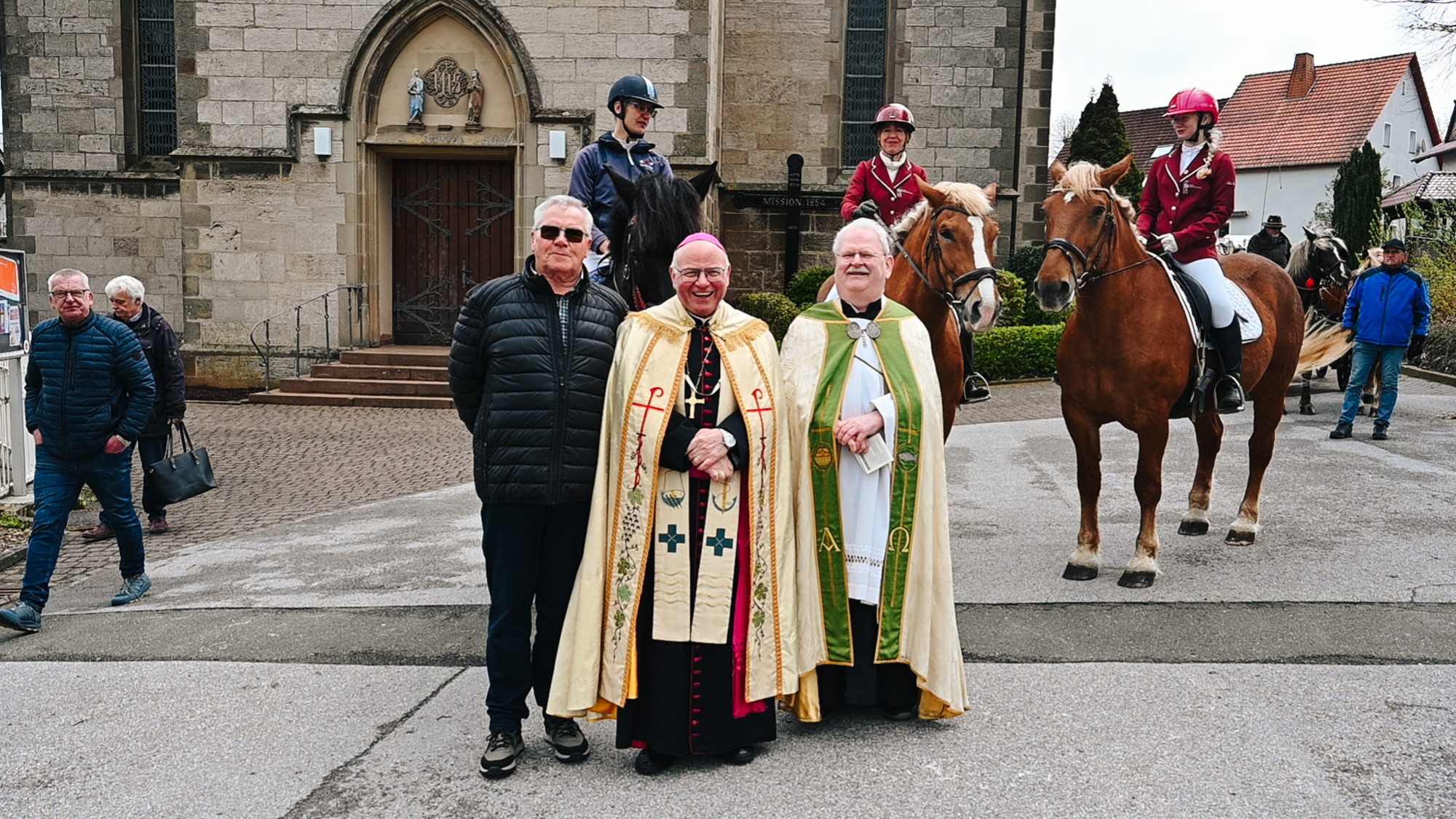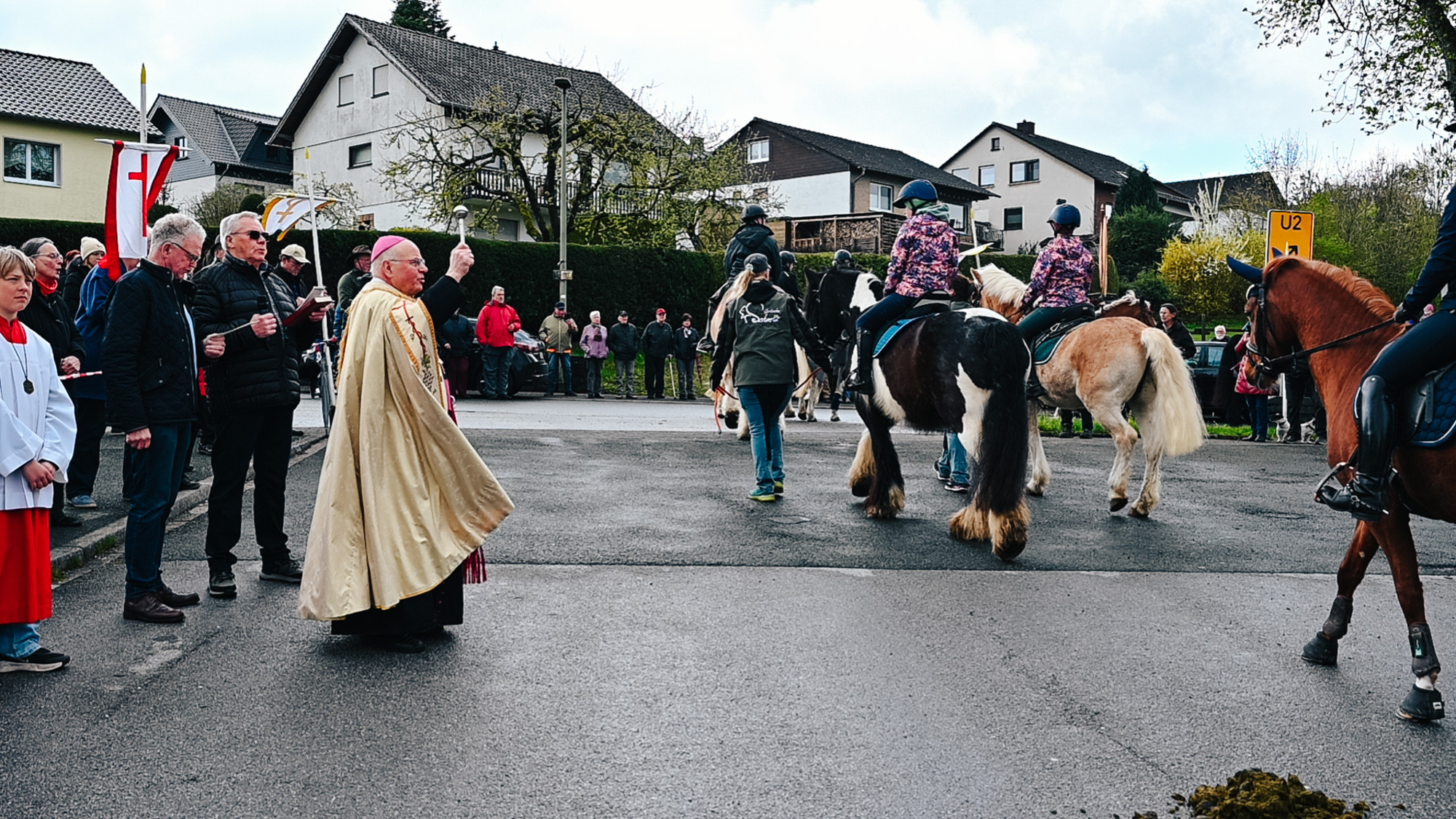 Wenn am zweiten Sonntag nach Ostern Frauen und Männer auf Pferden durch Dorf, Feld und Flur von Giershagen bei Marsberg im Sauerland reiten, dann ist dort Pferdeprozession. Im 300. Jubiläumsjahr feierte Weihbischof Hubert Berenbrinker in der Pfarrkirche von Giershagen ein festliches Pontifikalamt, segnete auf dem Kirchplatz bei der sogenannten Pferdeweihe die versammelten Reiterinnen und Reiter mit ihren Pferden, um so die traditionsreiche Prozession durch Giershagen und Umgebung zu starten. Trotz kaltem und regnerischem Wetter nahmen 30 Reiterinnen und Reiter mit ihren Pferden, zwei Gespanne mit Kutschen und zweihundert Zuschauer an der Giershagener Pferdeprozession teil. Weihbischof Berenbrinker rief in seiner Predigt zu einem „achtsamen Umgang mit Gottes Schöpfung“ auf.