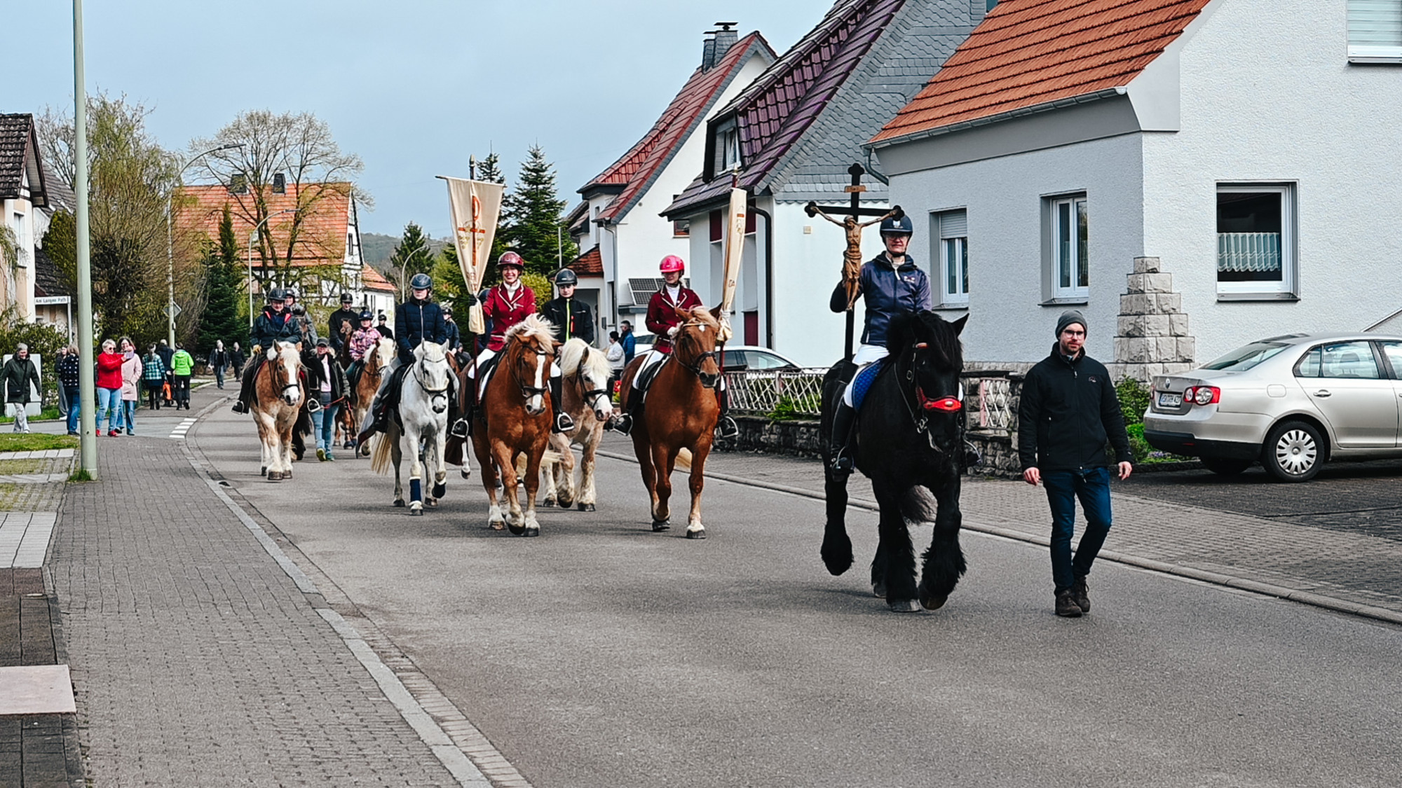 Die Giershagener Pferdeprozession – die einzige dieser Art im Erzbistum Paderborn – ist weit mehr als ein 300 Jahre alter Brauch: Sie ist ein Zeichen gelebten Glaubens und tiefer Verbundenheit mit der Heimat. Die Wurzeln der Pferdeprozession in Giershagen reichen zurück in eine Zeit großer Not: Der Überlieferung nach legten die Bauern von Giershagen in der Barockzeit ein Gelübde ab, als eine verheerende Pferdeseuche ihre Existenz bedrohte. Aus Dankbarkeit entstand eine Prozessions-Tradition, die bis heute fortlebt. Über Jahrhunderte hinweg wurde die Tradition lebendig bewahrt, ehe sie in den 1960er-Jahren vorübergehend zum Erliegen kam: Mit der Mechanisierung der Landwirtschaft verschwanden die Pferde aus dem bäuerlichen Alltag und damit auch die Grundlage für die Prozession der Reiterinnen und Reiter mit ihren Pferden. Doch vor 30 Jahren wurde der Brauch der Pferdeprozession wiederbelebt: Reiterinnen und Reiter der Reitvereine Brilon und Marsberg beteiligen sich, aber auch aus dem benachbarten Waldeck und Paderborner Land sind „Ross und Reiter“ dabei. Aus Dankbarkeit darüber, dass die Pferde-Seuche das Dorf vergleichsweise glimpflich traf, entstand die Tradition der Pferdeprozession. „Die Menschen haben Gott gedankt und dieses Gelübde über Generationen bewahrt“, erklärt Heiner Götte als Initiator der Wiederbelebung vor 30 Jahren.