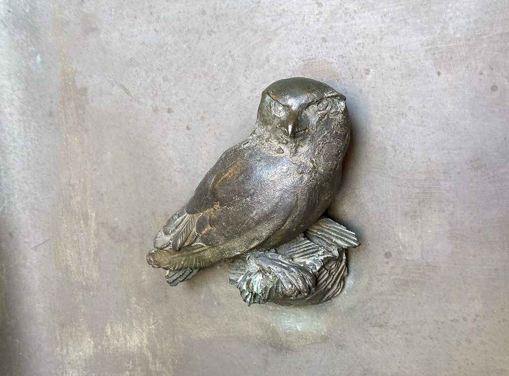 Eines der wenigen modernen Kunstwerke zeigt Papst Johannes XXIII. (1958-1963) mit vielen Menschen. Doch die einzige Figur auf Emilio Grecos Bronze-Relief von 1970 im linken Seitenschiff, die den Papst voll Vertrauen ansieht, ist ein abgemagerter Hund, Symbol der nach Gerechtigkeit, Liebe und Frieden hungernden Menschheit.