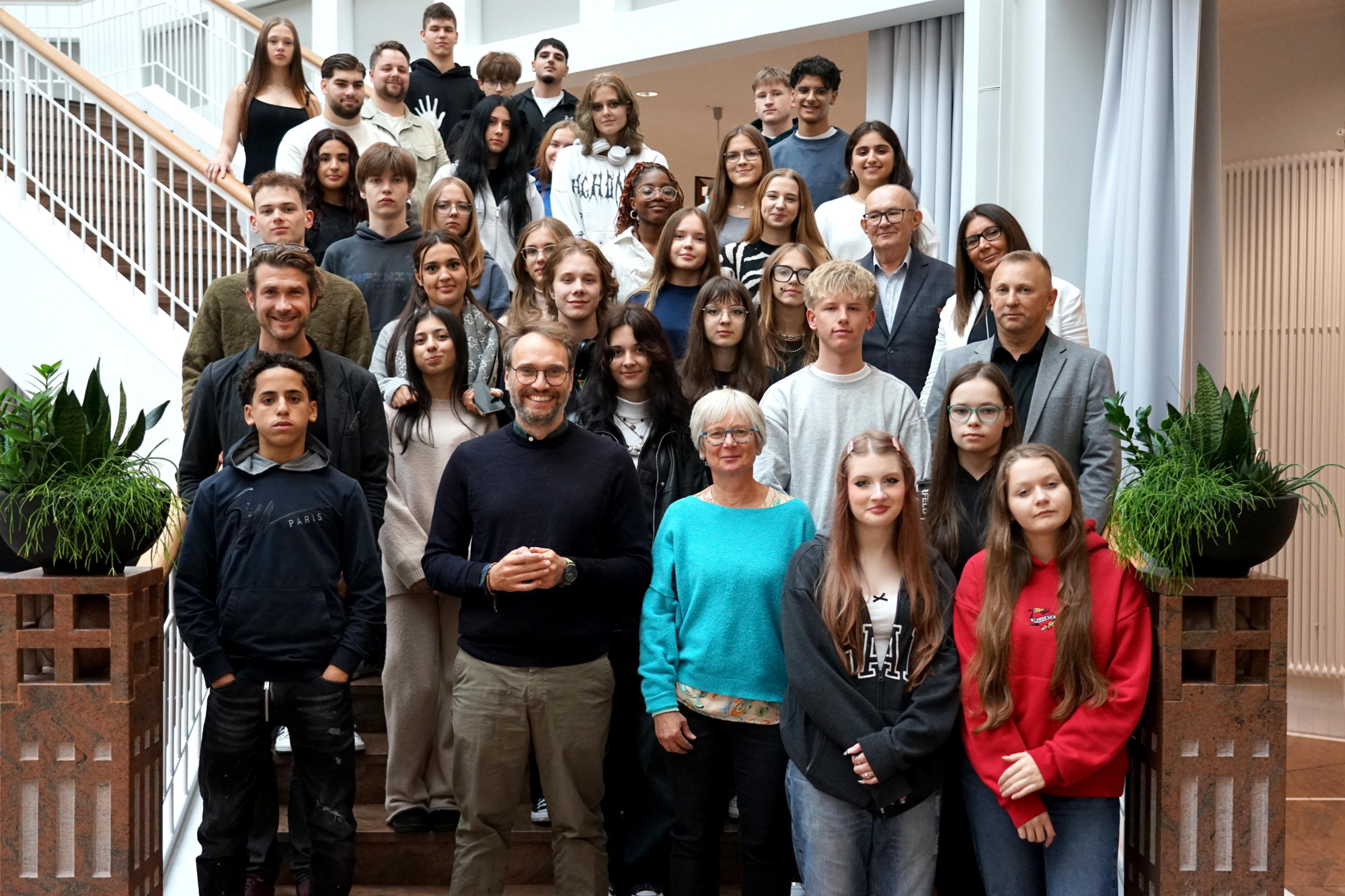 Bürgermeisterin Barbara Brunsing begrüßte am Montag im Dortmunder Rathaus vierzig Jugendliche aus Deutschland und Polen mit ihren Lehrkräften zum Auftakt des gemeinsamen Begegnungsprojekts „Dortmund x Radomsko. Erinnern für Heute in Europa“.