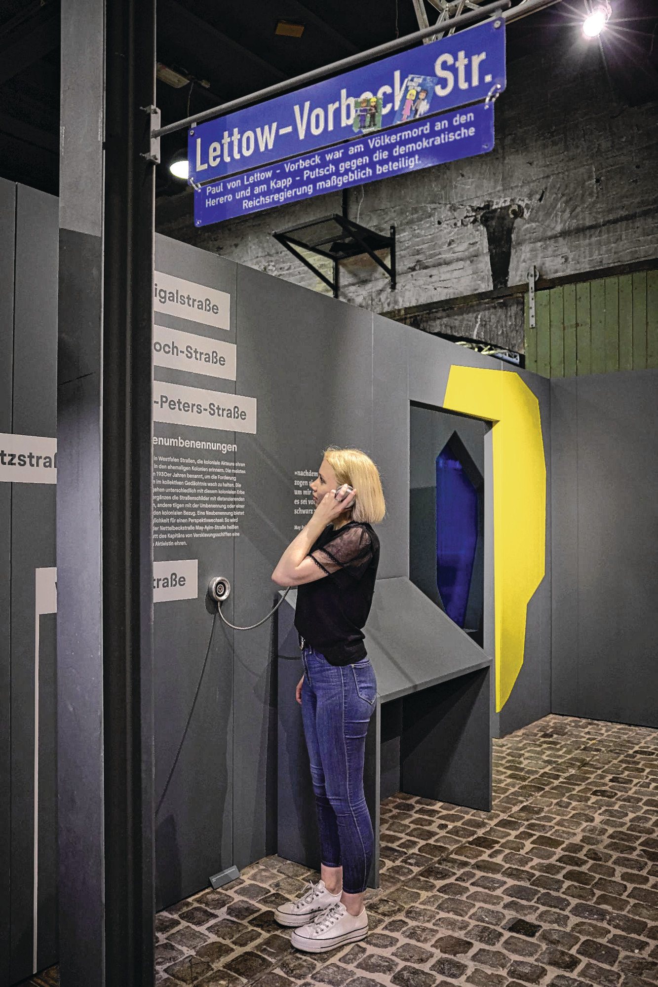 Und es gibt auch heute noch Besen und Usambaraveilchen. Beides ist in der Ausstellung, die auf 600 Quadratmetern Fläche 250 Exponate zeigt, eine interaktive Karte der Erinnerungsorte, 30 Hörstationen sowie künstlerische Interventionen bietet, vertreten. „Die Veilchen stammen ursprünglich aus dem heutigen Tansania, bevor sie ihren Siegeszug auf deutschen Fensterbänken antraten“, erklärt Kuratorin Dr. Barbara Frey.