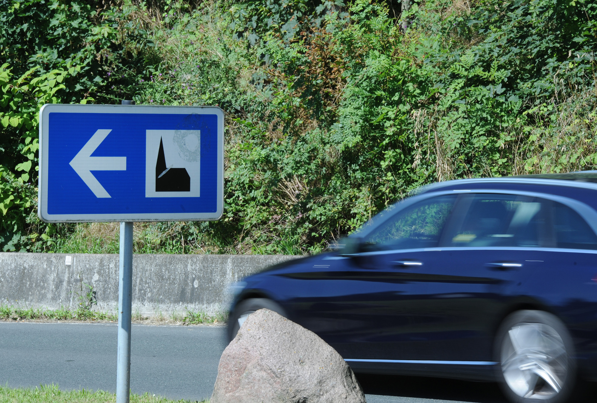 Der Lärm der Fahrzeuge übertönt hier draußen alle anderen Geräusche, in der Kapelle war er auf ein Hintergrundrauschen reduziert. Möglichst wenige Pausen auf dem Weg in den UrlaubIn der Reihe der Lkw fallen drei Schwertransporter mit überbreiten Betonfertigteilen auf. Sie müssen tagsüber pausieren und dürfen erst in der Nacht weiterfahren, wenn weniger Verkehr herrscht. Auch zwei Fahrzeuge, die sie absichern, müssen hier warten. Die Fahrer unterhalten sich. Ein paar Worte lassen sich aufschnappen: Von „Amateuren“ ist die Rede, die die Lkw-Parkplätze blockieren. Gemeint ist wohl ein grauer Mercedes, der sich unter die „Brummis“ gemischt hat und der mehr Raum beansprucht, als er eigentlich braucht. Ein Fahrer regt sich besonders auf: „Wenn es in die Ferien geht, muten sich die Leute Etappen und Fahrzeiten zu, die für uns undenkbar wären“, meint er
