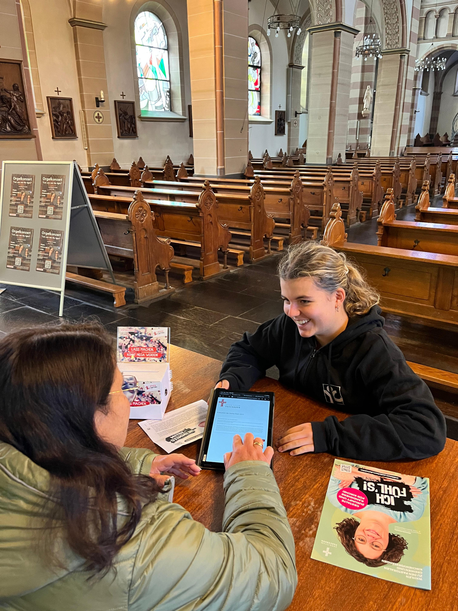 In den vergangenen Wochen haben im Erzbistum Paderborn die Wahlen zu den pastoralen Gremien und Kirchenvorständen stattgefunden. Erstmals wurden diese in Form eines hybriden Angebots durchgeführt – die Stimmabgabe war sowohl per Briefwahl als auch online möglich. Gerade für ältere Gemeindemitglieder ist die digitale Welt noch eine große Herausforderung. Aus diesem Grund hat die youngcaritas Witten an drei Terminen Unterstützung in der Kirche selbst angeboten. Die Hauptamtlichen und Ehrenamtlichen Mitarbeitenden haben nach dem Gottesdienst beim Zugang zur Online-Plattform und bei der digitalen Stimmabgabe geholfen. So wurde sichergestellt, dass niemand aufgrund technischer Hürden von der Wahl ausgeschlossen wird.