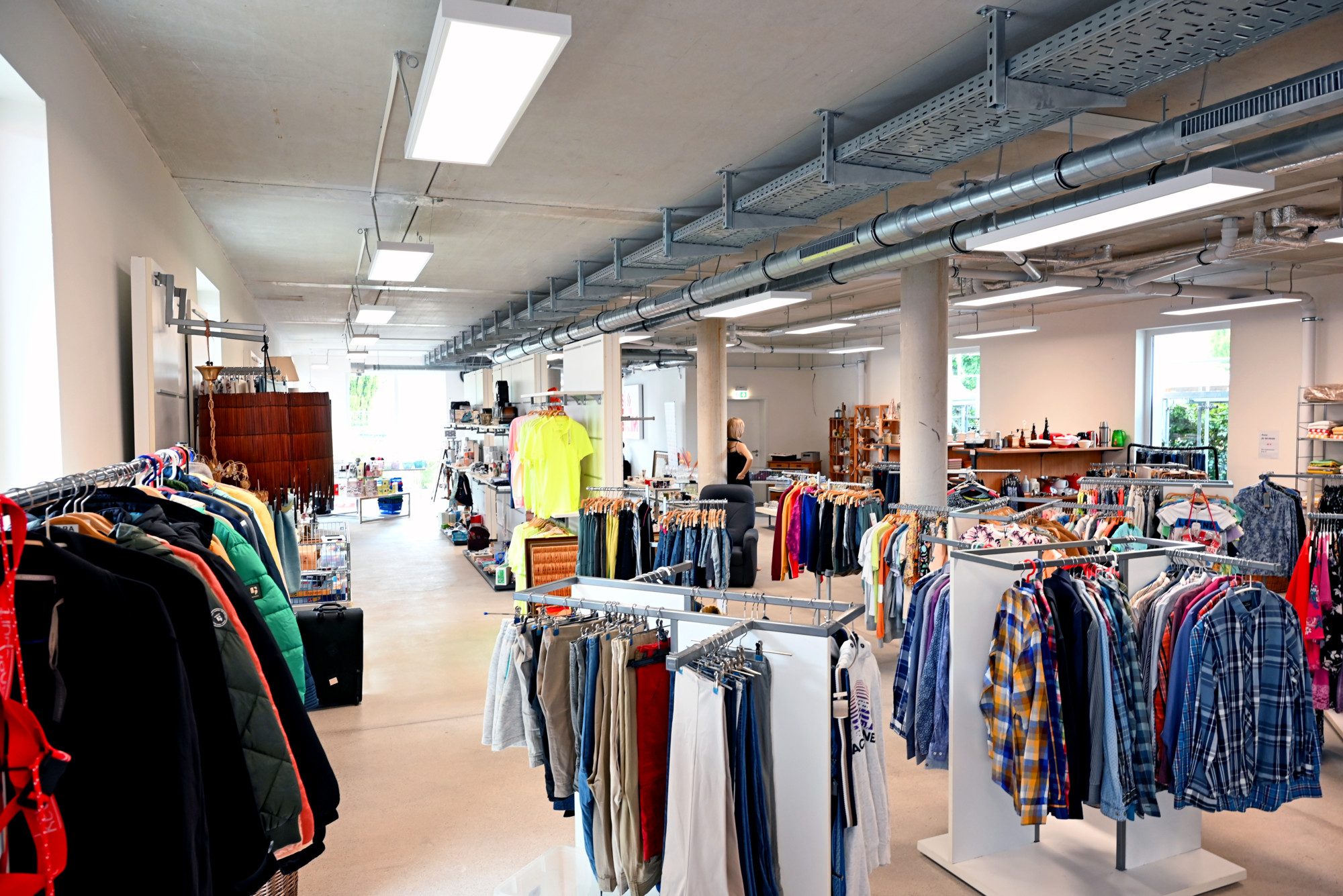 Der SKM betreut und beschäftigt im Sozialkaufhaus und einer angeschlossenen Kreativwerkstatt langzeitarbeitslose Menschen. Zehn arbeiten im Sozialkaufhaus, das auf einer Fläche von 466 Quadratmetern gebrauchte und neue Waren anbietet. In der angegliederten Kreativwerkstatt werden eigene Produkte entwickelt und gebaut, aber auch gespendete Waren wie etwa Möbel und Fahrräder aufgearbeitet oder repariert. In den oberen beiden Etagen befinden sich 14 altersgerechte barrierefreie Zwei-Zimmer-Wohnungen mit Bad und Balkon mit einer Wohnungsgröße von je 36 Quadratmetern sowie zwei rollstuhlgerechte Zwei-Zimmer-Wohnungen mit Bad und Balkon auf 47 Quadratmetern.