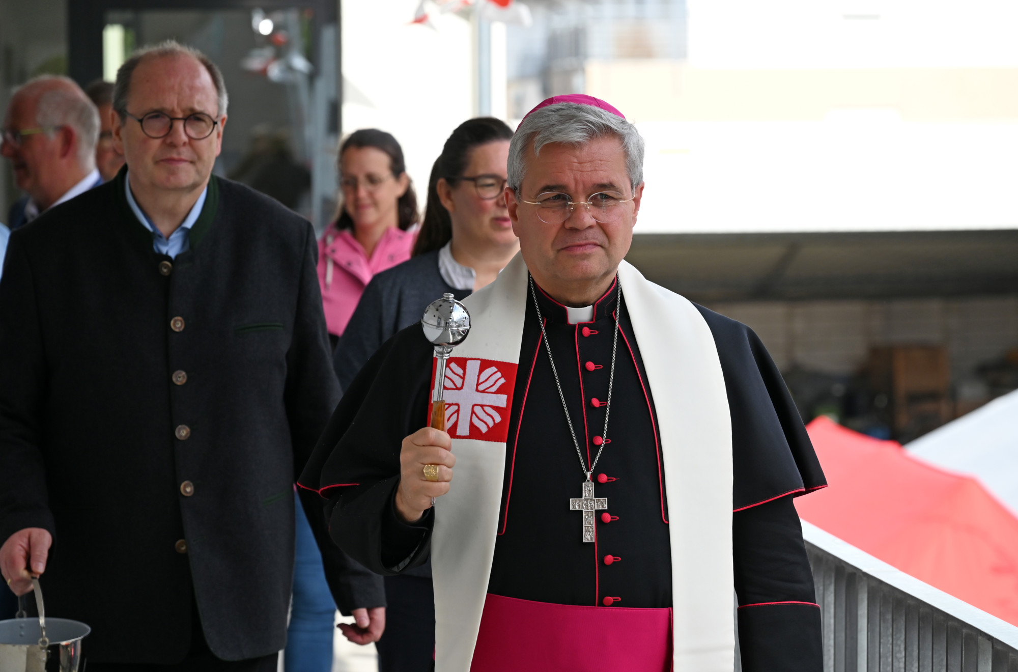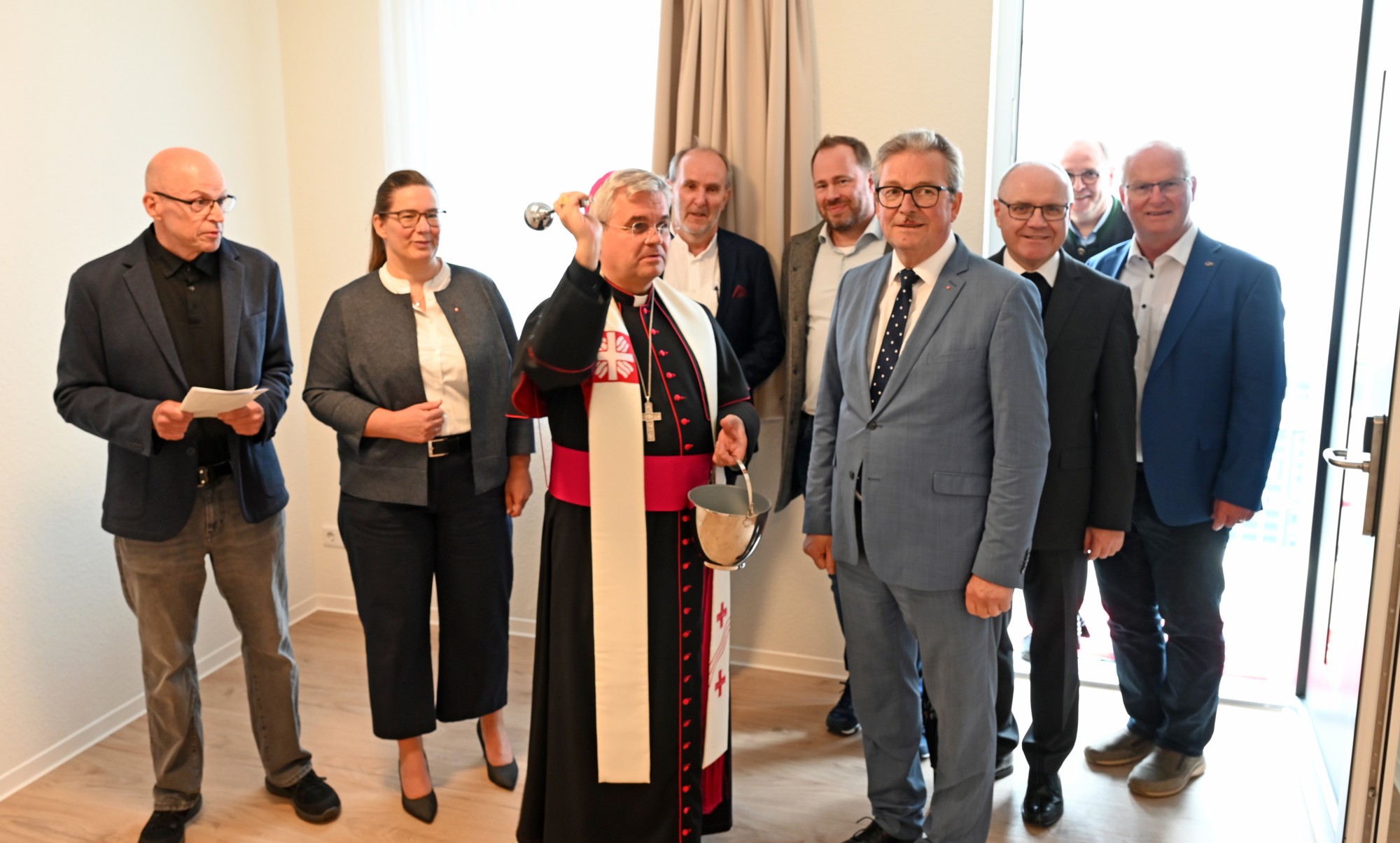 Erzbischof Dr. Udo Markus Bentz segnete bei einem Hoffest auf dem SKM-Gelände das neue Gebäude im Anschluss an einen Gottesdienst auf dem Gelände. Es sei „ein Ort, der Zukunft schenkt“, sagte er. Das Gebäude mit einem Sozialkaufhaus sowie 16 Wohnungen für von Wohnungslosigkeit bedrohte Menschen schaffe verlässliche Räume für Menschen, was aber mehr sei als nur eine funktionale Hilfe gegen Wohnungslosigkeit. Es sei daher heute „ein Tag der Hoffnung, ein Tag, an dem aus einer Idee ein Raum wird – ein Raum der Würde.“
