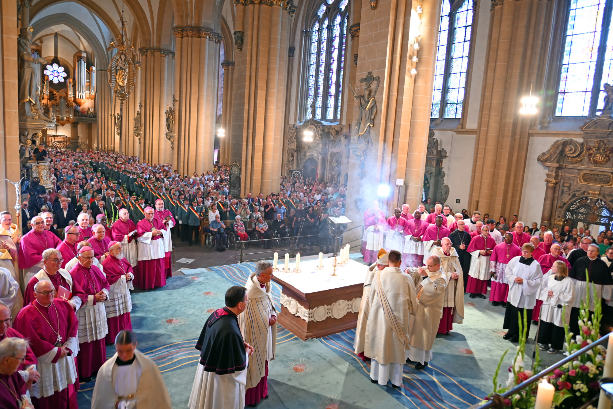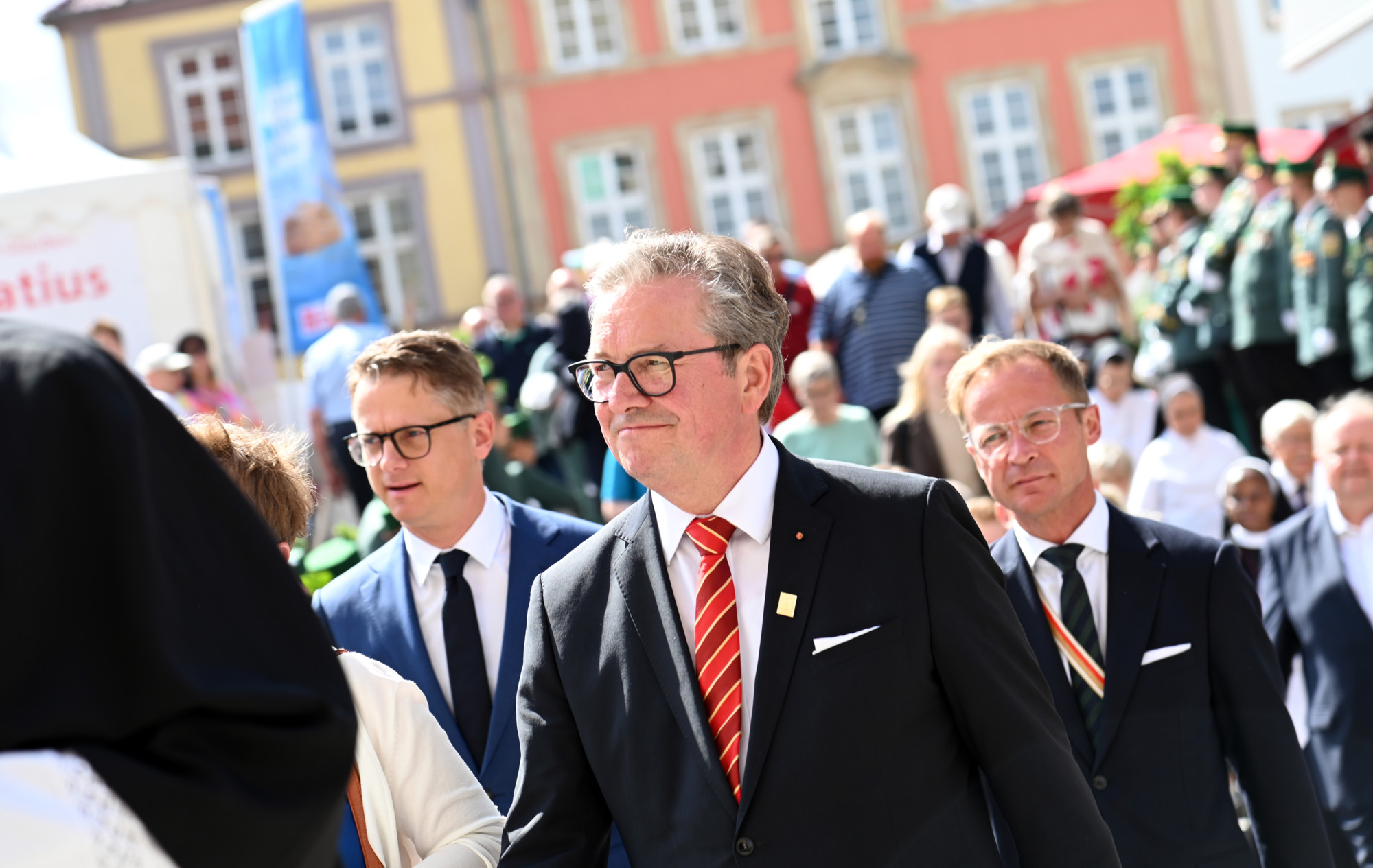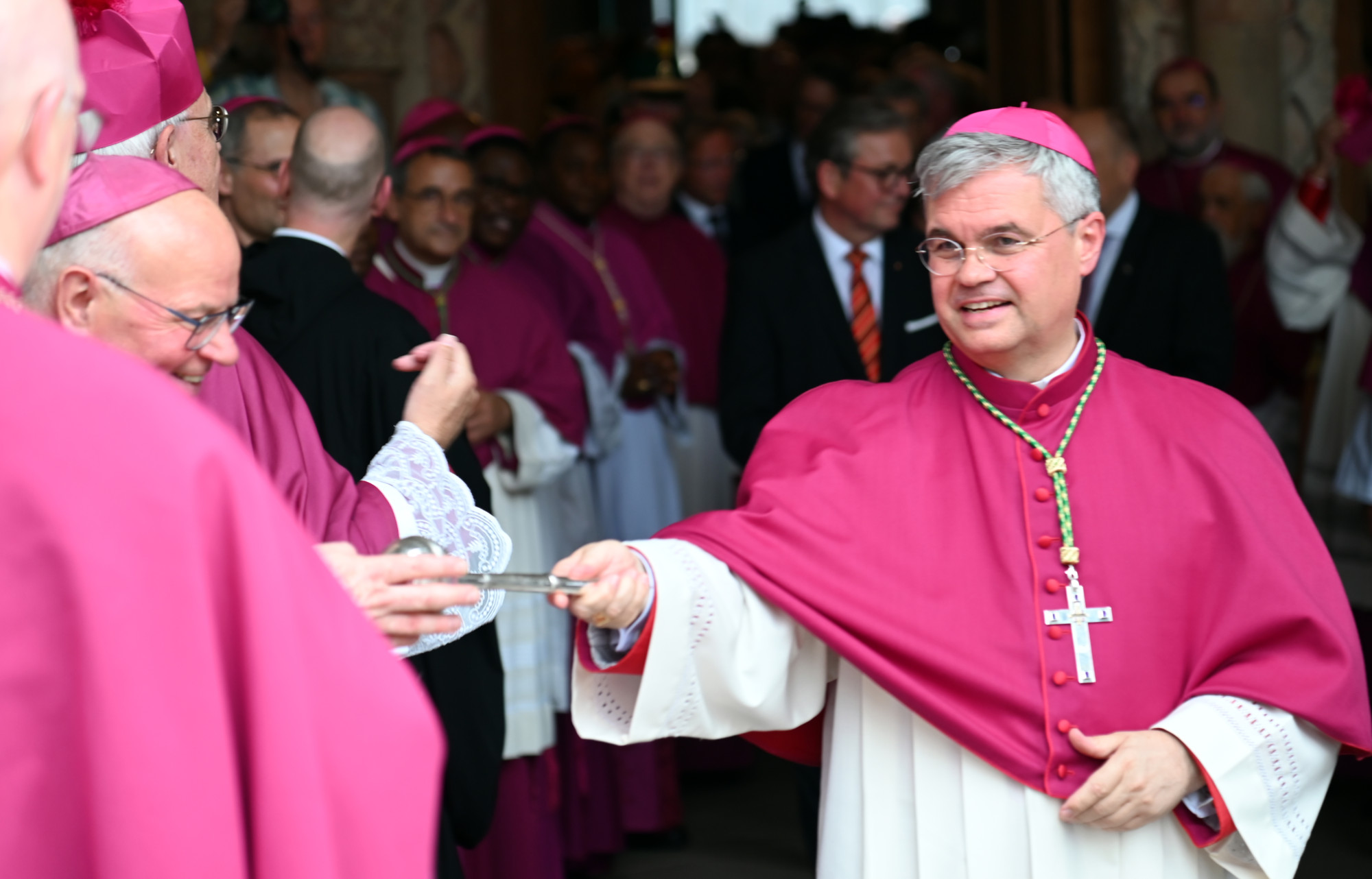 „Verwurzelt in unserer Herkunft“ komme es darauf an, das Evangelium lebensrelevant anschlussfähig zu machen an die gesellschaftlichen und kulturellen Herausforderungen der aktuellen Zeit, forderte Erzbischof Dr. Bentz in seiner Predigt. „Wir haben keine andere Zeit als unsere Gegenwart, um die Kraft des Evangeliums zu bezeugen.“ Das christliche Menschenbild sei gerade heute ein Schlüssel, um die unverbrüchliche Würde eines jeden Menschen zu schützen und den Einzelnen stark zu machen. „Jesu Vision vom Miteinander der Menschen stärkt die Eigenverantwortung eines jeden und zugleich die Solidarität der Gemeinschaft mit den Schwachen und erteilt allen eine Absage, die das eine gegen das andere ausspielen wollen“, erklärte der neue Paderborner Erzbischof.