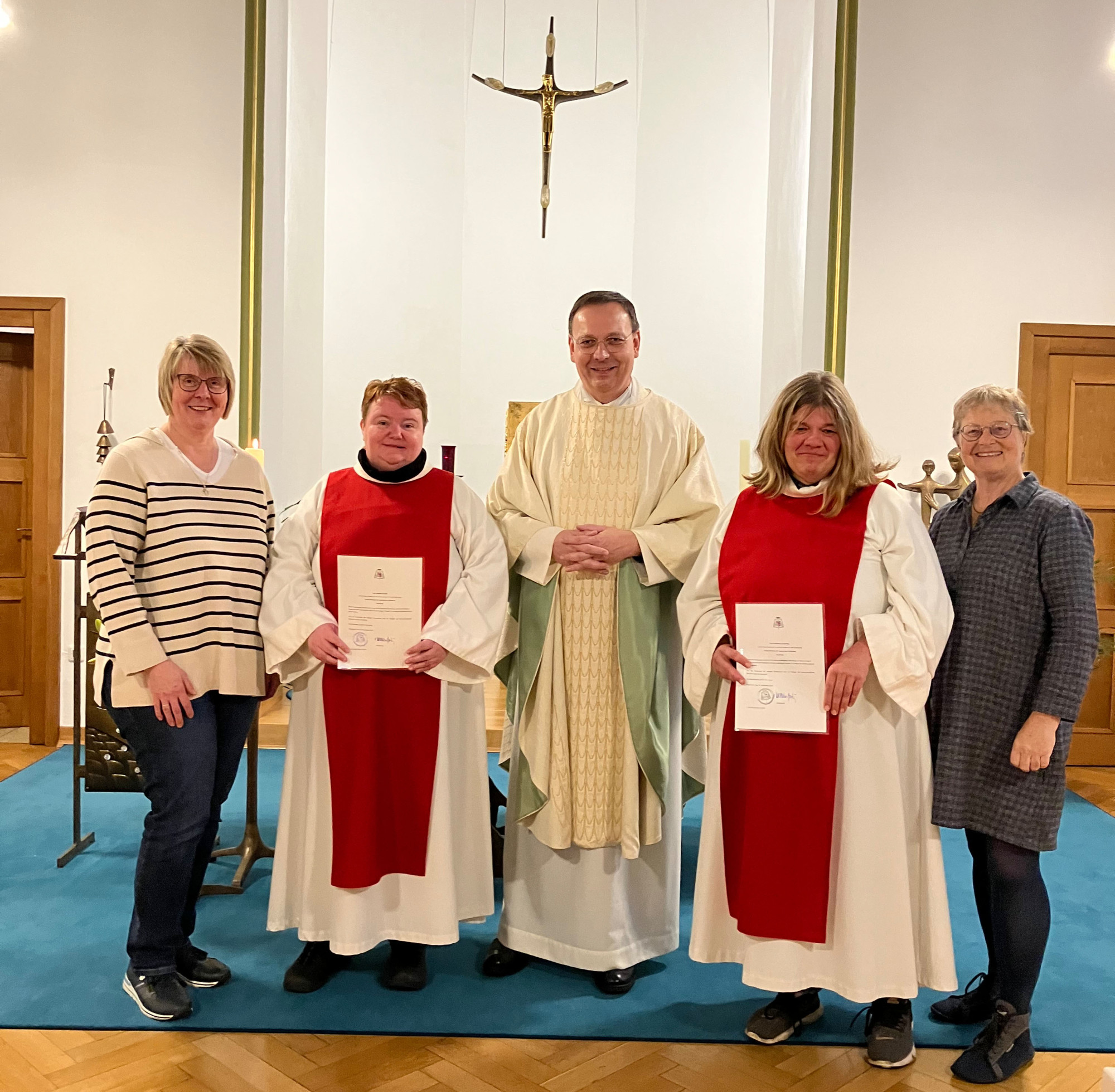 Die Beauftragung zum Kommunionhelferdienst umfasst in der Regel den Kommunionhelferdienst in der Eucharistiefeier, die Spendung der Krankenkommunion und die Feier der Wort-Gott-Feier mit Kommunionspendung, wenn spontan die Eucharistie ausfallen muss. Um eine Überforderung zu vermeiden, sind die beiden Teilnehmerinnen ausschließlich zum Kommunionhelferdienst in einer Eucharistiefeier beauftragt worden.