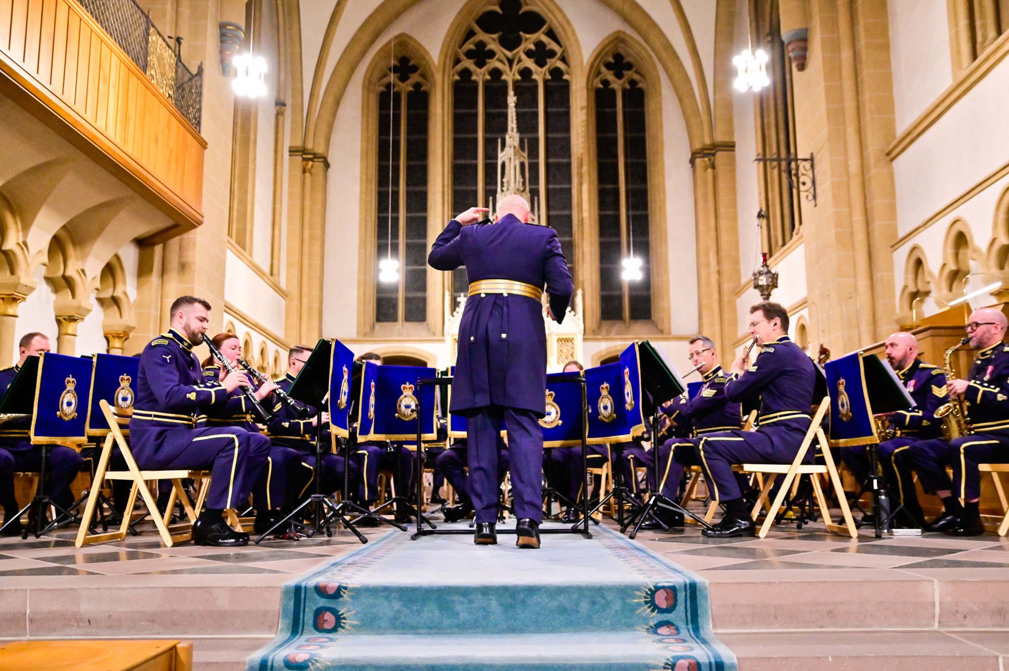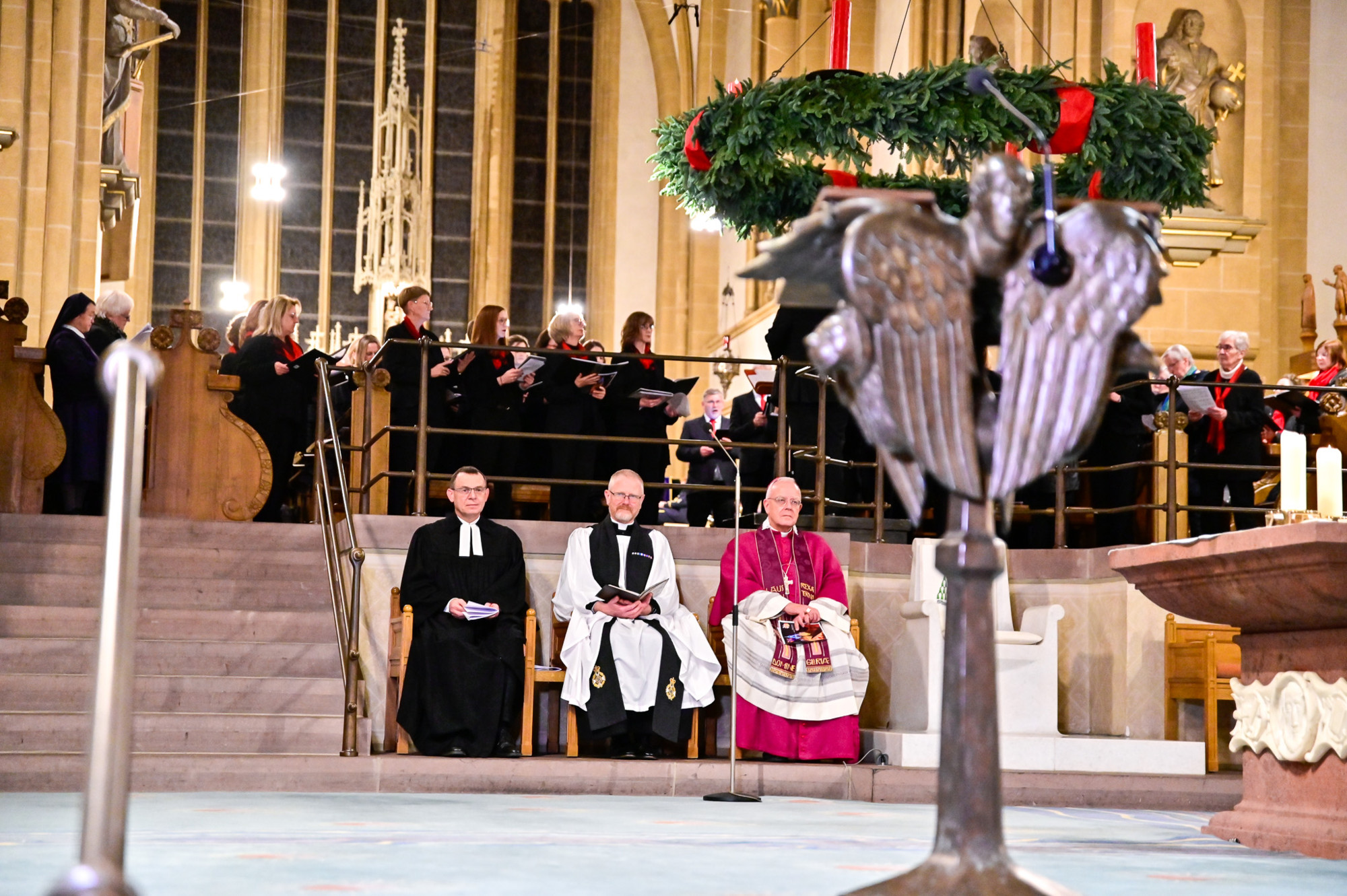Die neun Lesungen aus dem Alten und Neuen Testament erzählten in bewegender Weise die Geschichte Gottes mit den Menschen – von der Schöpfung bis zum Prolog des Johannesevangeliums: „Im Anfang war das Wort.“ Den Höhepunkt markierte auch in diesem Jahr wieder die emotionale musikalische Gestaltung. Neben dem Projektchor bestehend aus dem Chor „Zwischentöne“, der Chorgemeinschaft St. Hedwig und dem Kirchenchor St. Laurentius Nordborchen unter der Leitung von Christian Nolden, erfüllte vor allem die renommierte Band of the Royal Air Force Regiment unter der Leitung von Flying Officer Michael J. Howley die Bischofskirche mit eindrucksvollen Klängen. Markus Maurer begleitete an der Domorgel.