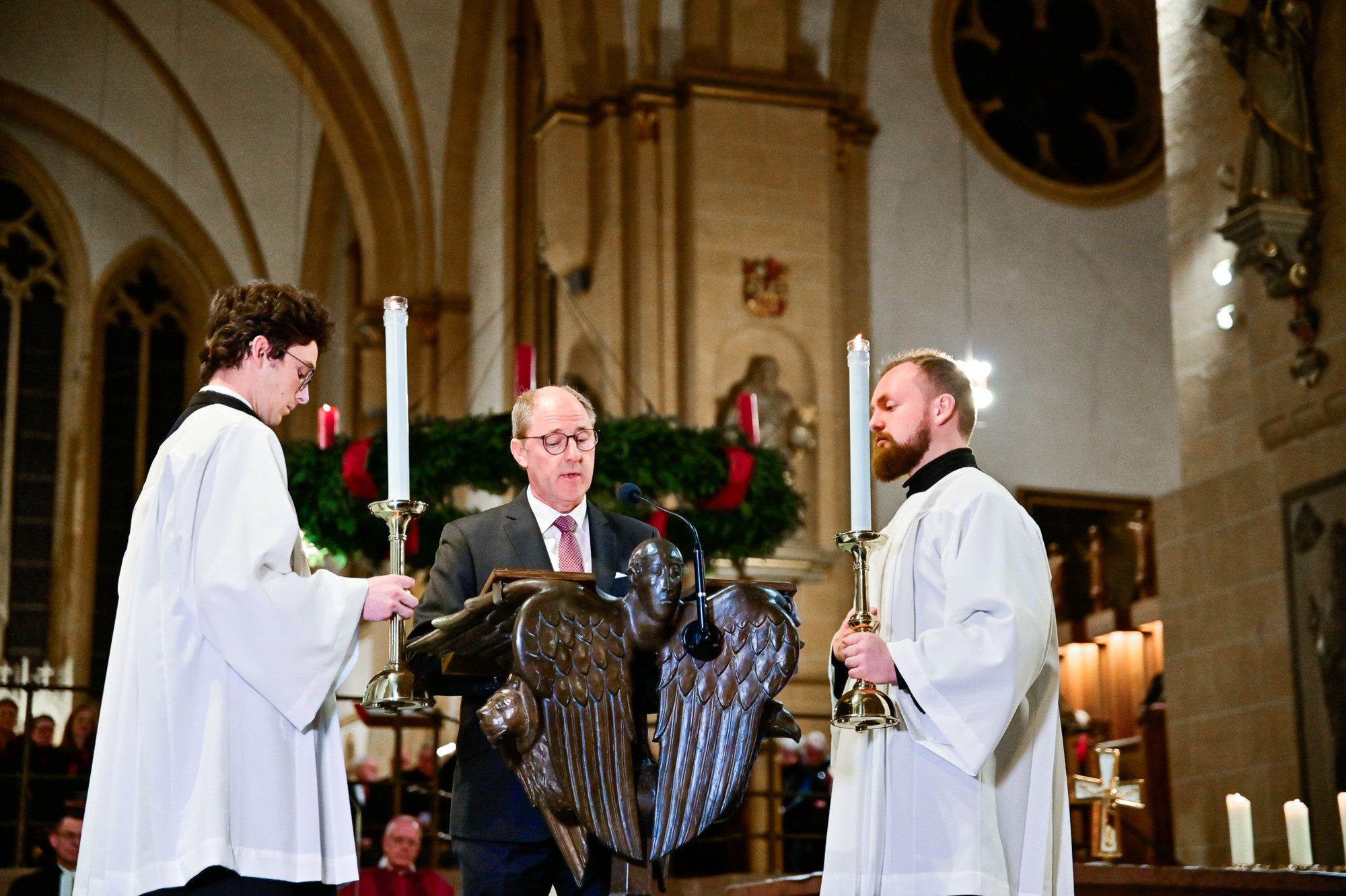Die große Besucherzahl, die auch in diesem Jahr im Paderborner Dom vertreten war, stimmte Matthias König, der den Gottesdienst gemeinsam mit Pfarrer Dr. Eckhard Düker und Reverend Nicholas „Nick“ Adley gestaltete, gewohnt begeistert: „lch behaupte einmal ungeschützt, dass der Christmal Carol Service – natürlich nach dem Liborifest – hier im Paderborner Dom der meistbesuchte Gottesdienst im ganzen Jahreslauf ist. Das zeigt mir, dass diese Form, die Christen verschiedener Konfessionen und Menschen, die keiner Glaubensgemeinschaft angehören, zusammenführt, nichts von ihrer Anziehungskraft eingebüßt hat.“