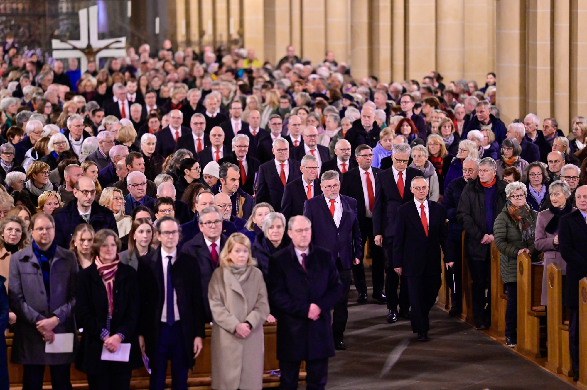Sie alle waren gekommen, um teilzuhaben an der eindrucksvollen internationalen Botschaft des Friedens und der Hoffnung, die sich in diesem Jahr vor allem an die Menschen in der Ukraine, im Sudan und im Nahen und Mittleren Osten richtete: „Trotz aller Not, aller Kriege und Krisen in der Welt: Christen haben durch alle Zeiten weitergehofft, dass Frieden möglich ist. Die Botschaft vom Friedensfürsten Jesus Christus hat ihnen dazu die Hoffnung geschenkt. Diese Botschaft will auch uns heute Abend anrühren und uns so ins Herz gehen, dass wir Botinnen und Boten des Friedens werden“, appellierte Weihbischof Matthias König zu Beginn des Gottesdienstes.