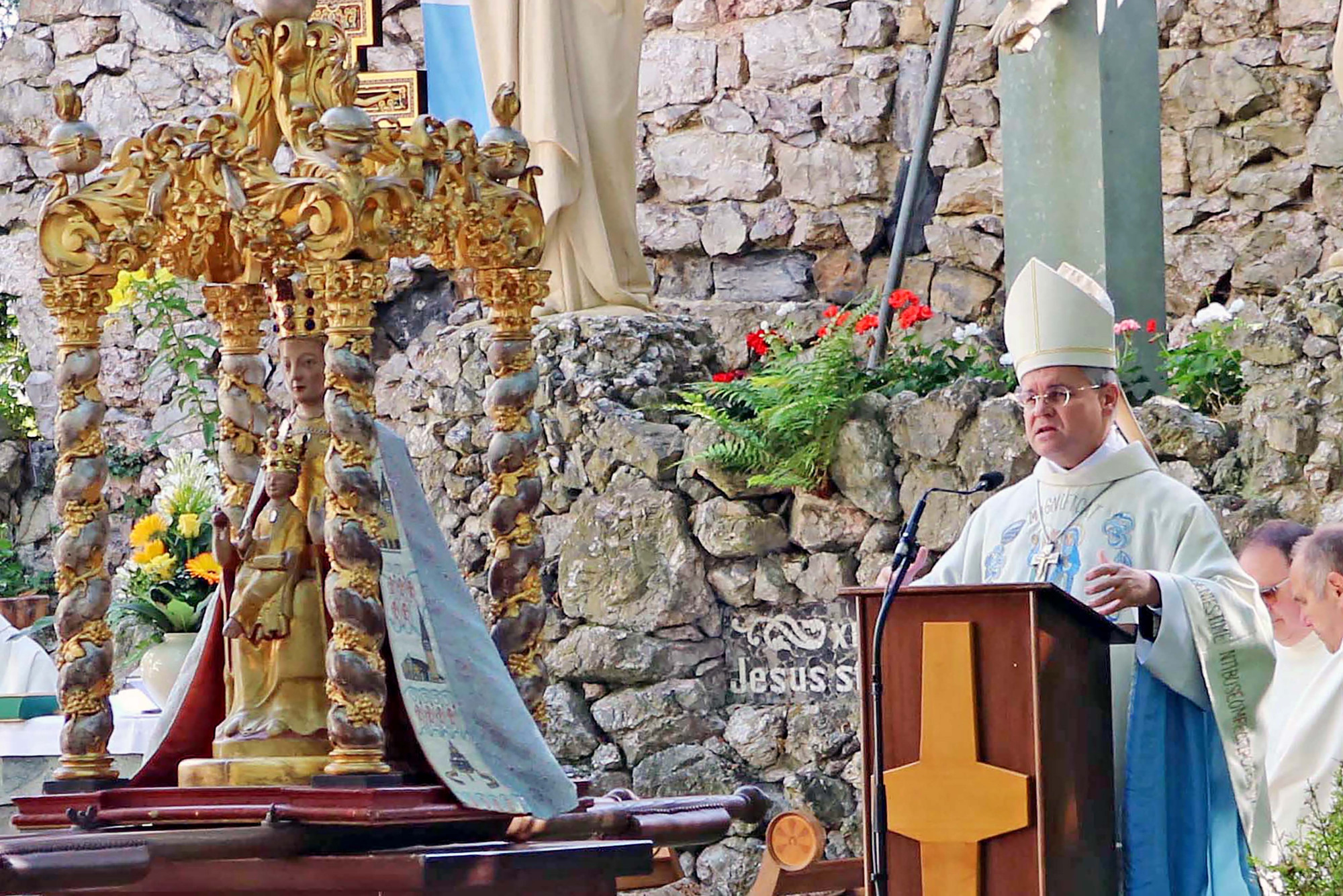 Diesen Begegnungs-Aspekt nahm Erzbischof Dr. Udo Markus Bentz in seiner Predigt auf: „Wir brauchen in unserer Kirche auch künftig solche Orte und Ereignisse, in denen vertiefte Begegnungen miteinander und mit Gott ermöglicht werden: besondere Kirchorte wie Werl, zu denen Menschen aufbrechen können und Begegnung erleben.“ Der Erzbischof schlug den Bogen von der Begegnung zur Bewegung und brachte den Gläubigen vor Ort damit die Verbindung zu Maria nahe: „Maria macht sich auf den Weg. Wer aufbricht und nicht sitzen bleibt, wer sich auf den Weg macht, bei dem kommt auch innerlich etwas in Bewegung. Das gilt auch für uns als Kirche. Es muss uns gelingen, als Kirche – als Erzbistum, als Gemeinde vor Ort – in Bewegung zu kommen. Das Festgefahrene festzuhalten, hilft uns nicht weiter. Schon immer war es ein großartiges Bild, die Kirche als ‚das pilgernde Volk Gottes unterwegs‘ zu bezeichnen. Und wenn uns in unserer Zeit die gleiche Frage wie Maria umtreibt – Wie geht es weiter, was bringt die Zukunft? –, dann möchte ich uns ermutigen: Wenn wir es wirklich mit Gott zu tun bekommen, dann werden wir nicht erstarren, sondern uns verändern und aufbrechen.“