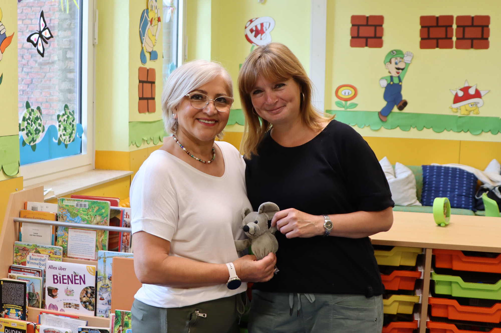 „Der Einstieg in die Kommunikation erfolgte über Bilder, Lieder, Spiele und Malen.“ Sanye Ünsal ergänzt: „Die Kinder haben in der „Mäusegruppe“ die Strukturen und Abläufe in der Schule kennengelernt und freuen sich jetzt auf ihre eigene Einschulung. Aber auch nach Abschluss des Förderangebotes sind wir als vertraute Bezugspersonen und Ansprechpartnerinnen im Schulumfeld für die Kinder da.“