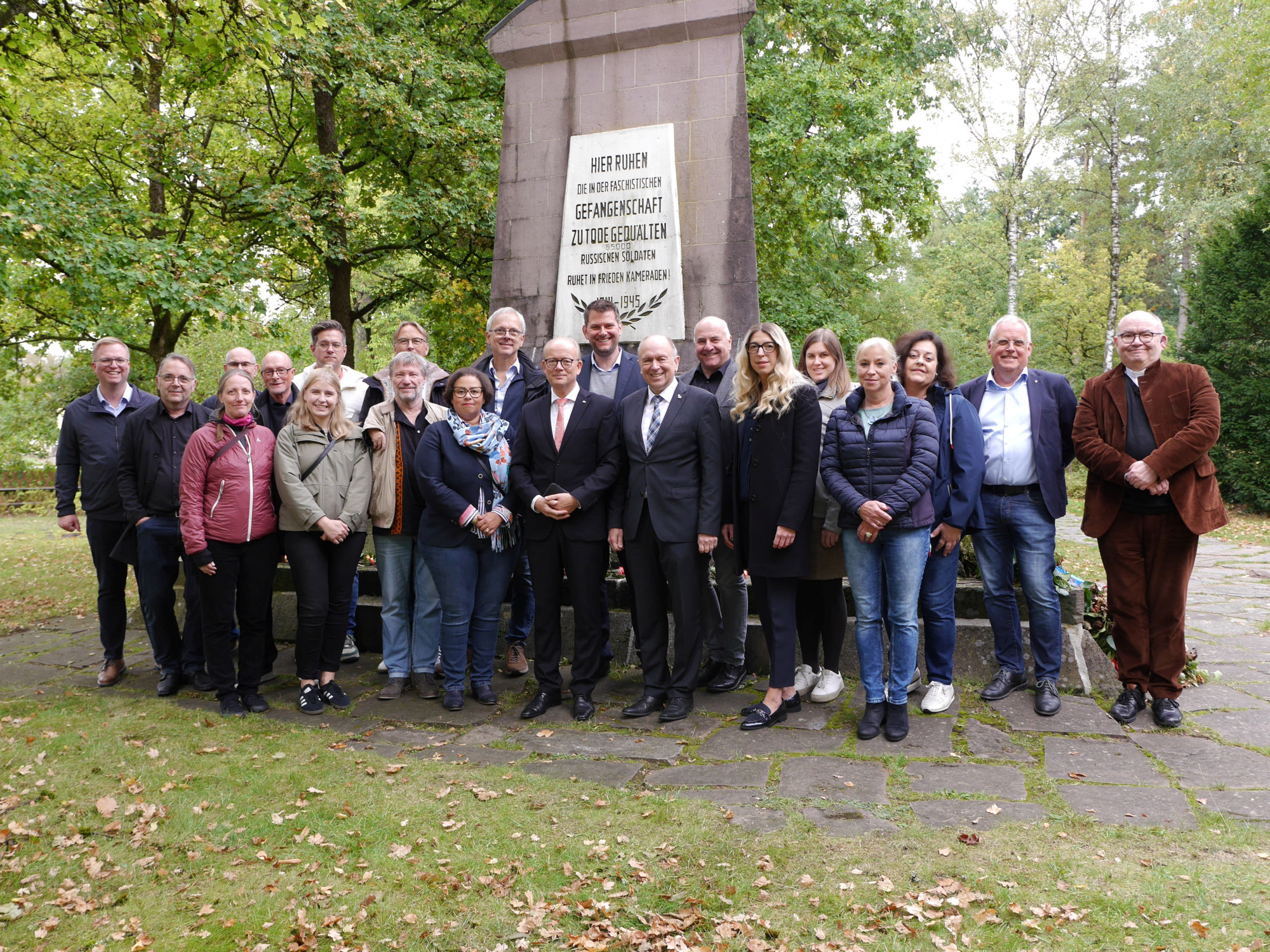 Mit einer Gedenkveranstaltung hat das Diözesankomitee im Erzbistum Paderborn gemeinsam mit dem NRW-Landtagspräsidenten André Kuper am vergangenen Samstag in Schloß Holte-Stukenbrock ein klares Signal für Erinnerungskultur und demokratische Verantwortung gesetzt. Die Teilnehmenden gedachten an der Gedenkstätte Stalag 326 (VI K) und auf dem Ehrenfriedhof der Opfer von Krieg und Gewaltherrschaft.