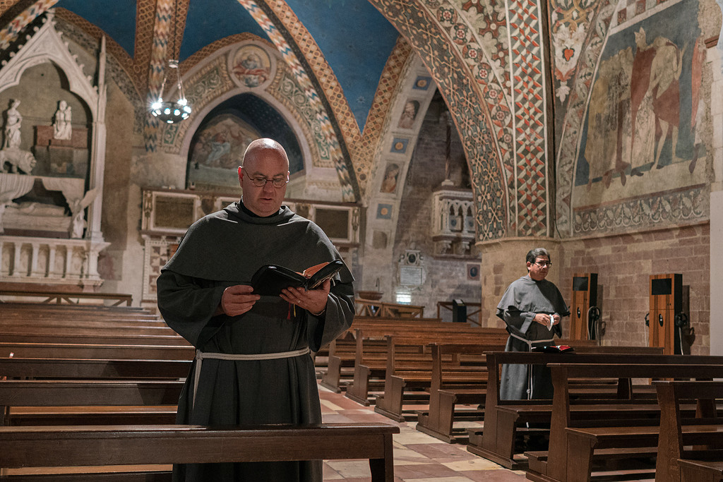 Es war schon Nacht, als sich Ordensmänner in schwarzen und grauen Gewändern über ein schlichtes Gefäß mit jahrhundertealten Knochenresten beugten: die Reliquien des heiligen Franz von Assisi (1182-1226), entnommen seinem Grab in der Krypta der nach ihm benannten Basilika in seiner Geburtsstadt Assisi. „Das war ein sehr bewegender Moment, die sterblichen Überreste jenes Mannes zu sehen, der bis heute so viele Menschen begeistert“, erinnert sich Bruder Thomas Freidel, seit 18 Jahren Pilgerseelsorger für die deutschsprachigen Gäste in Assisi, an das einzigartige Ereignis 2015. „So etwas schafft eine emotionale Verbindung über die Zeit hinweg.“