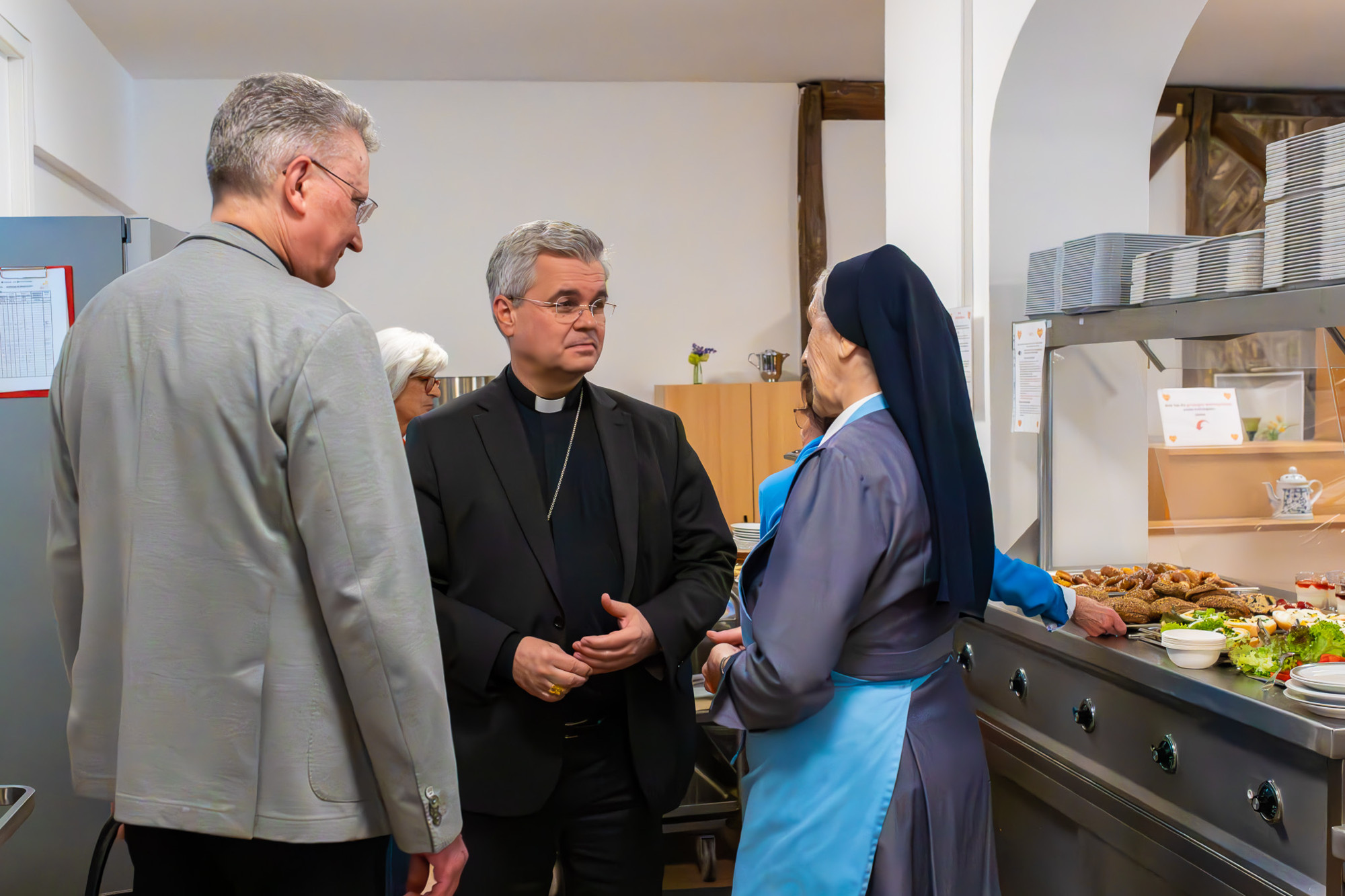 Erzbischof Dr. Udo Markus Bentz hat das Paderborner Gasthaus PaderMahlZeit besucht. Im Gepäck trug der neue Paderborner Erzbischof einen Spendenscheck über 17.000 Euro. Die Summe stammt aus der Kollekte anlässlich seiner Amtseinführung am 10. März. Die „PaderMahlZeit“, getragen vom Verein „Unser Hochstift rückt zusammen e.V.“, nutzt den Betrag, um laufende Kosten im Gasthaus an der Paderborner Heierstraße zu decken und bedürftigen Menschen weiterhin kostenlose Mahlzeiten zur Verfügung zu stellen.