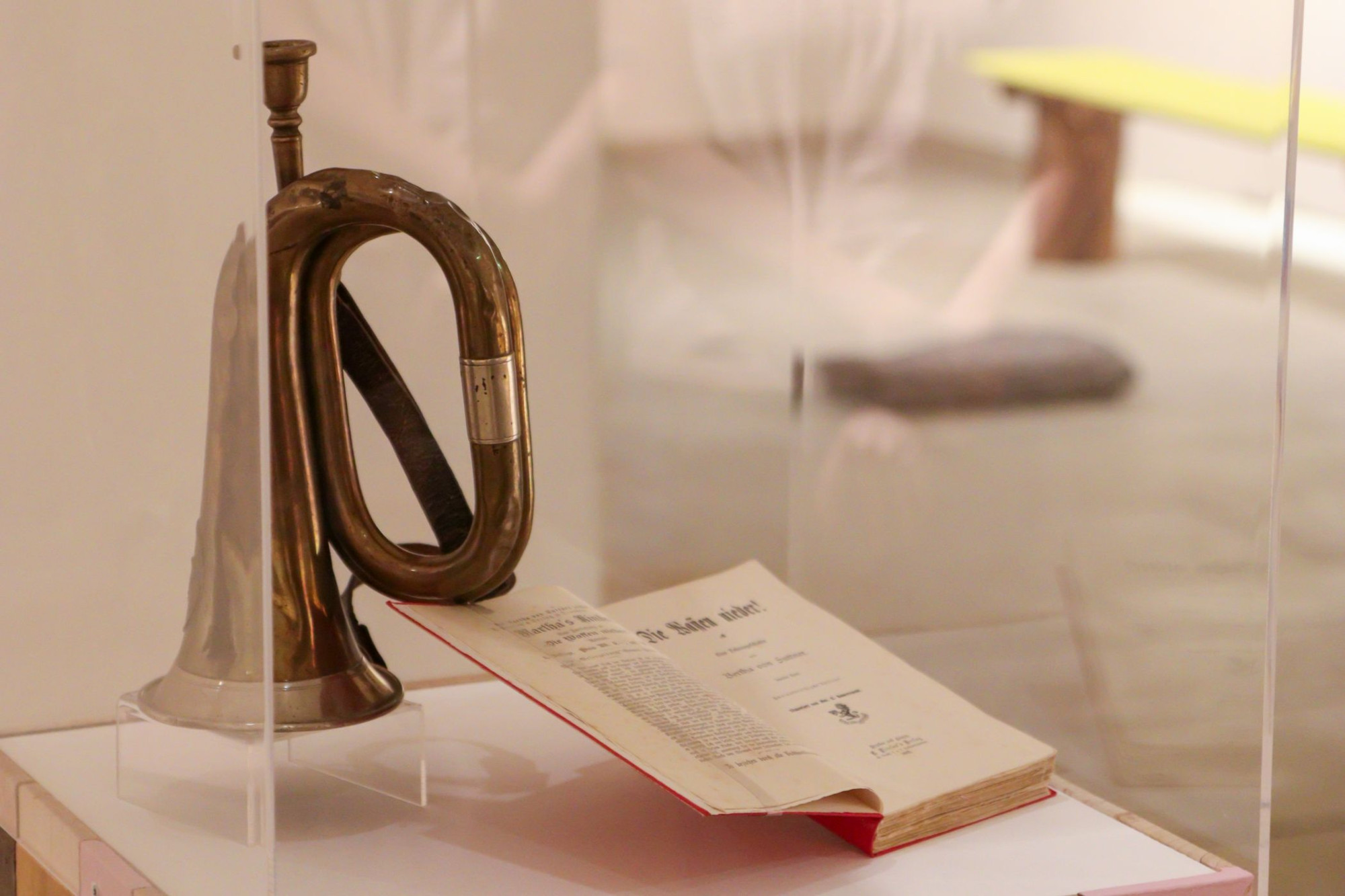 Die Ausstellung bietet zahlreiche Partizipationsmöglichkeiten. Die kleineren Räume der Sonderausstellungsfläche auf der linken Seite des Flurs laden mit Sofas zum Verweilen und Hören ein. Hier können Interessierte in Booklets blättern und Musikbeispielen lauschen. Die größeren Räume auf der rechten Seite des Flurs zeigen (musik)geschichtliche Exponate aus der Sammlung des LWL-Preußenmuseums.