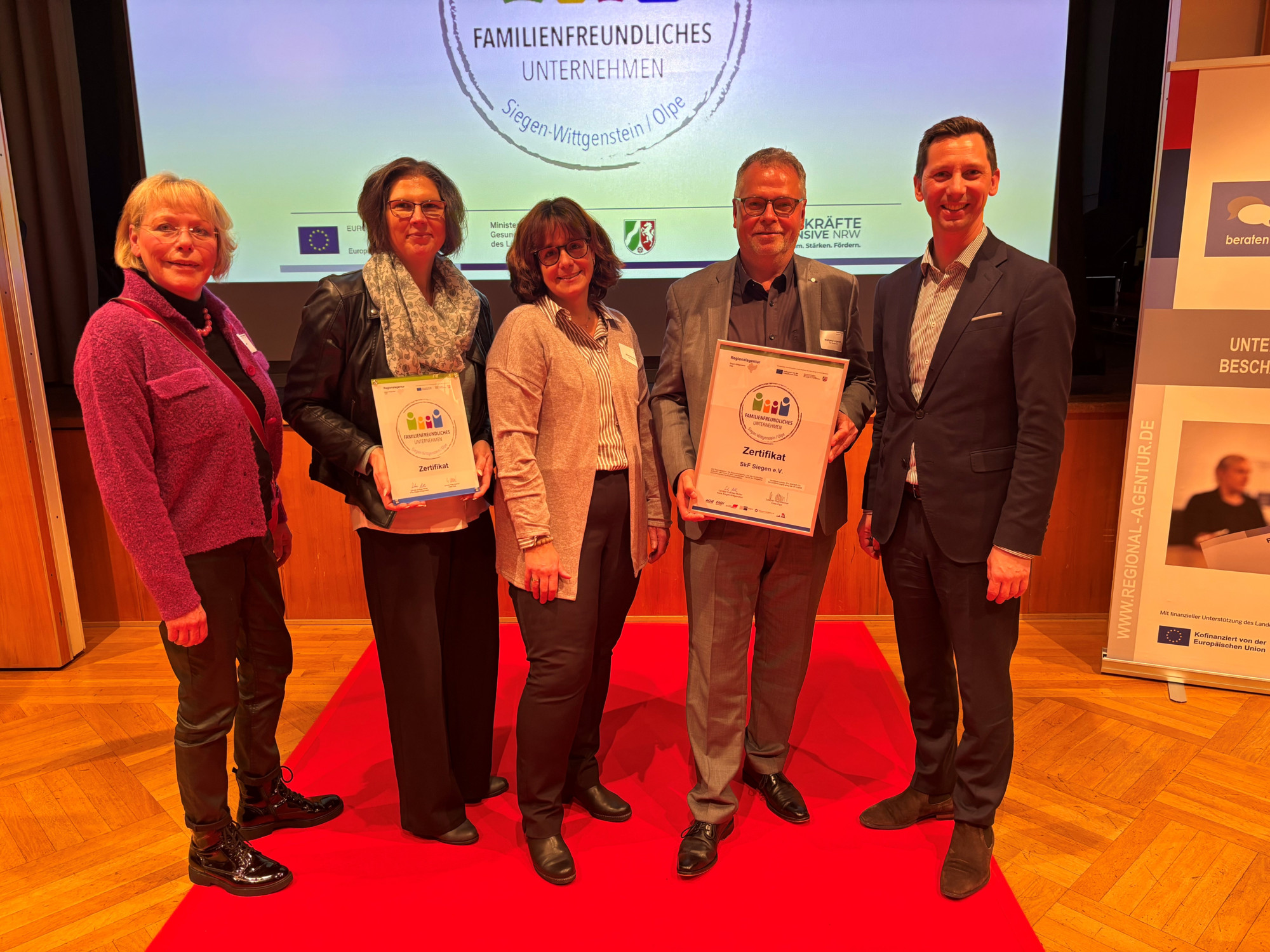 Der SkF Siegen e.V. freut sich, dass dieser im Haus der Wirtschaft in Siegen eine bedeutende Auszeichnung erhalten hat. Landrat Andreas Müller hat dem Verein mit Stolz das Prädikat des familienfreundlichen Unternehmens verliehen. „Dies stellt eine wertvolle Anerkennung der fortwährenden Bemühungen des SkF dar, ein Arbeitsumfeld zu schaffen, das die Balance zwischen Beruf und Familie fördert“, heißt es vob Seiten des SkF.