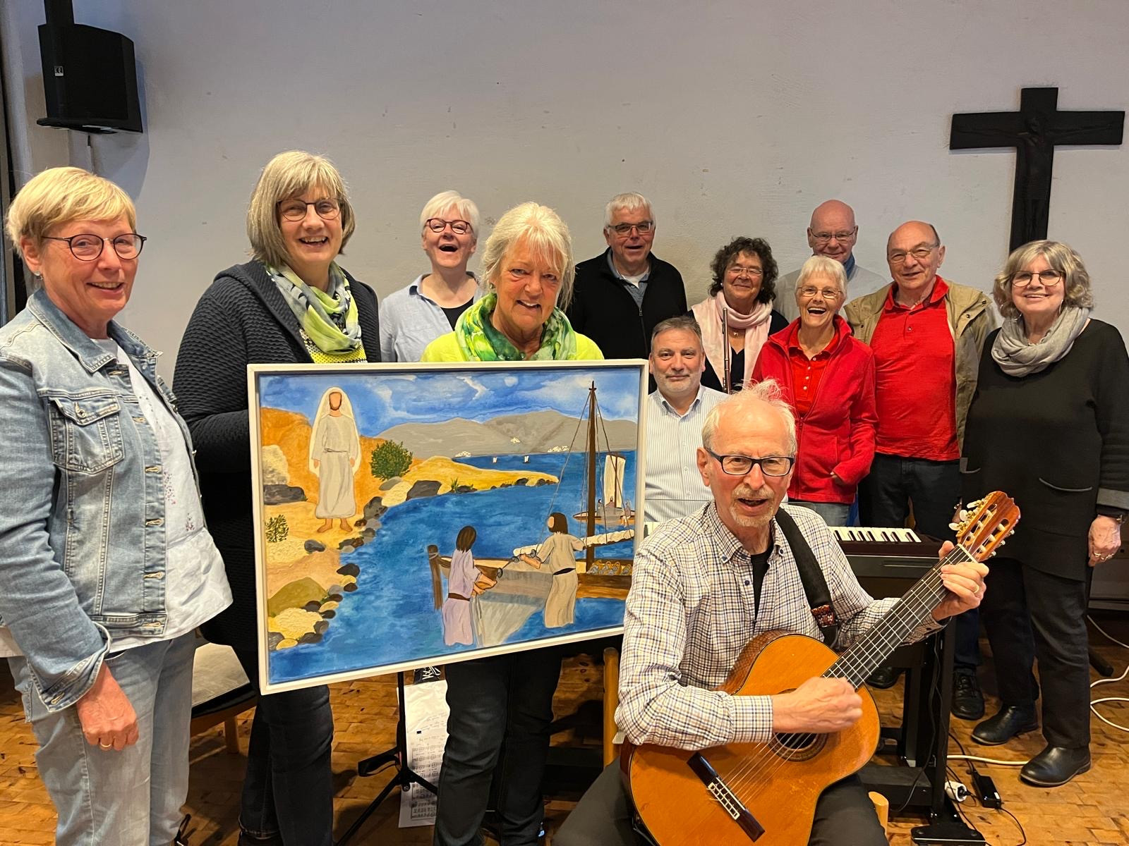 Gleichzeitig hatte Barbara Holler 13 Stationen aus dem Leben Jesu gemalt. Diese werden am 29. Juni auf eine Großleinwand projiziert, so dass das Publikum förmlich eintauchen kann in die Gemälde, die Musik und die Texte, die eindrucksvoll von den Lektoren Angelika und Rudolph Lauer gelesen werden. Der Gesamteindruck wirkt wie eine sakrale Collage, die prägnant das Leben Jesu wie im Zeitraffer und dennoch intensiv vorbeiziehen lässt.