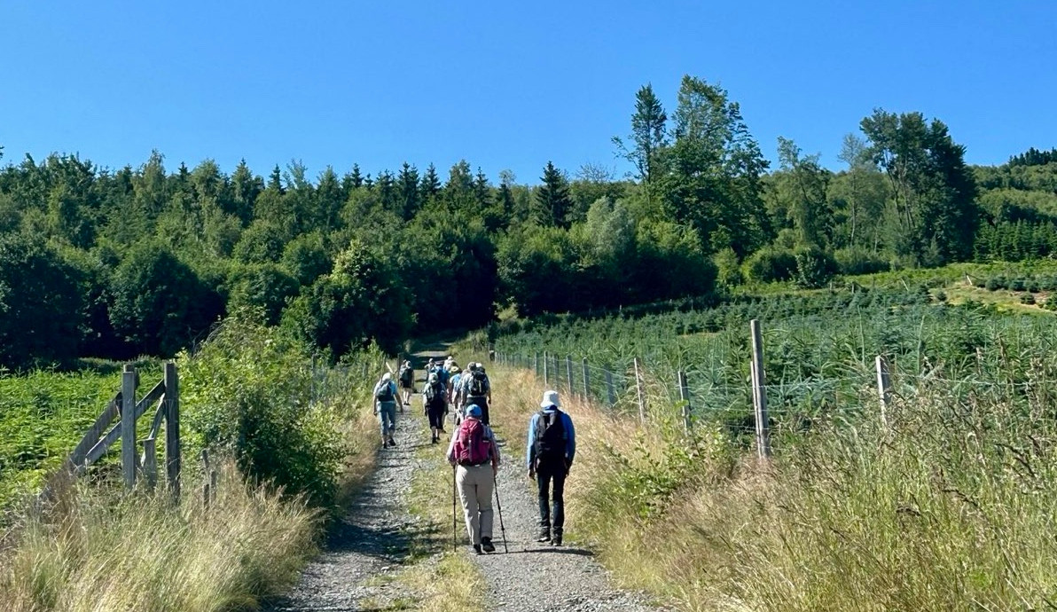 Unter dem Motto „Pilgerinnen und Pilger der Hoffnung – gemeinsam unterwegs“ hatten sich 25 Frauen und Männer aus den ostwestfälischen Kirchenkreisen Herford, Lübbecke, Minden und Vlotho sowie dem Dekanat Herford-Minden auf einen dreitägigen Pilgerweg im Hochsauerland begeben. Manche gehen schon seit vielen Jahren mit, andere sind zum ersten Mal dabei. Vom Bahnhof Bestwig geht es zu Fuß in 15 Minuten zum Bergkloster der Schwesterngemeinschaft, deren Ursprünge in Frankreich liegen. Der erste Abend gilt dem gegenseitigen Kennenlernen.