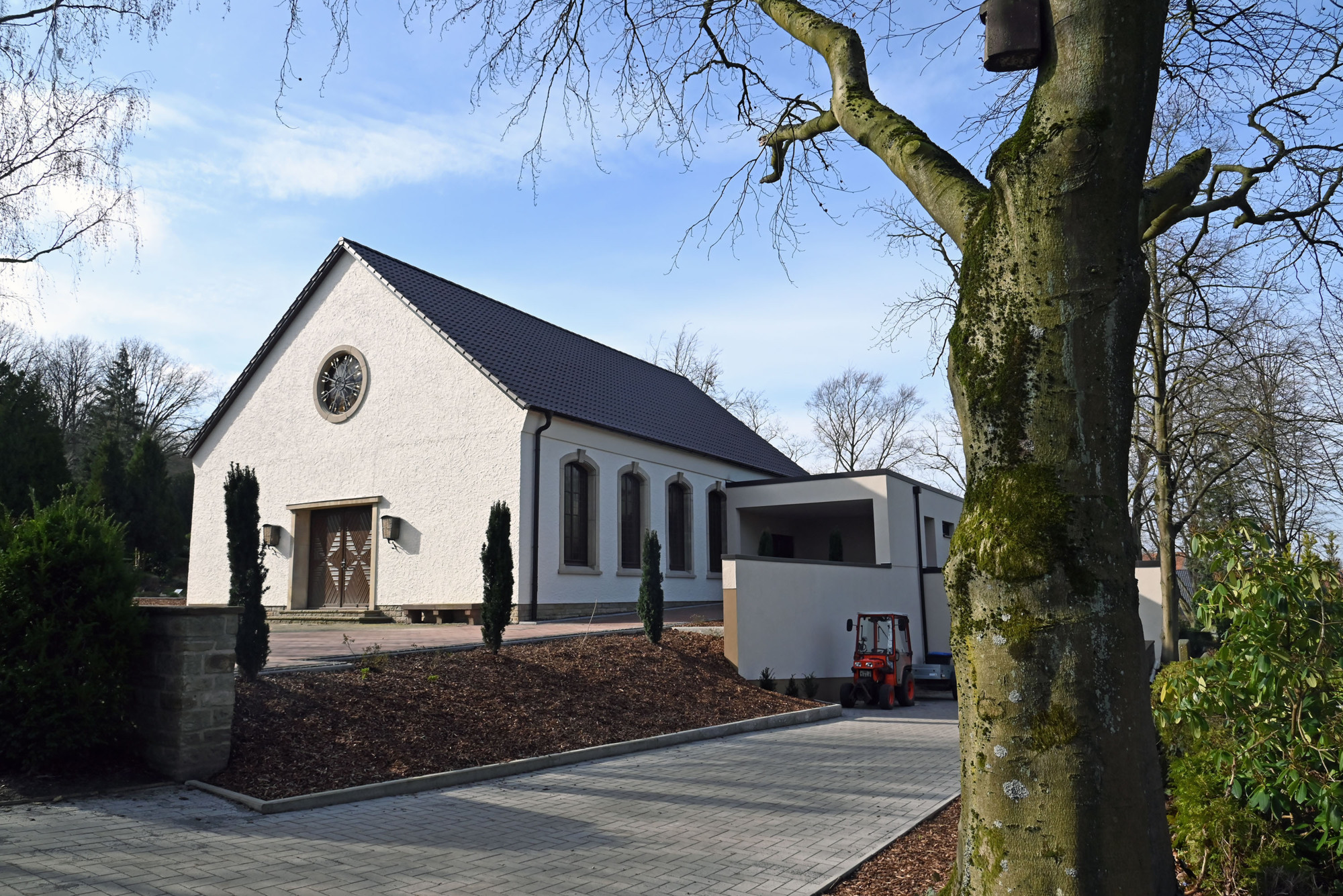 Seit 1950 wird die städtische Friedhofskapelle, nach dem Entwurf des Lübbecker Architekten Bünemann, genutzt. Sie steht, wie auch der Friedhof selbst, allen Konfessionen und Weltanschauungen gleichermaßen zur Verfügung. Sie bietet rund 200 Trauernden Platz.