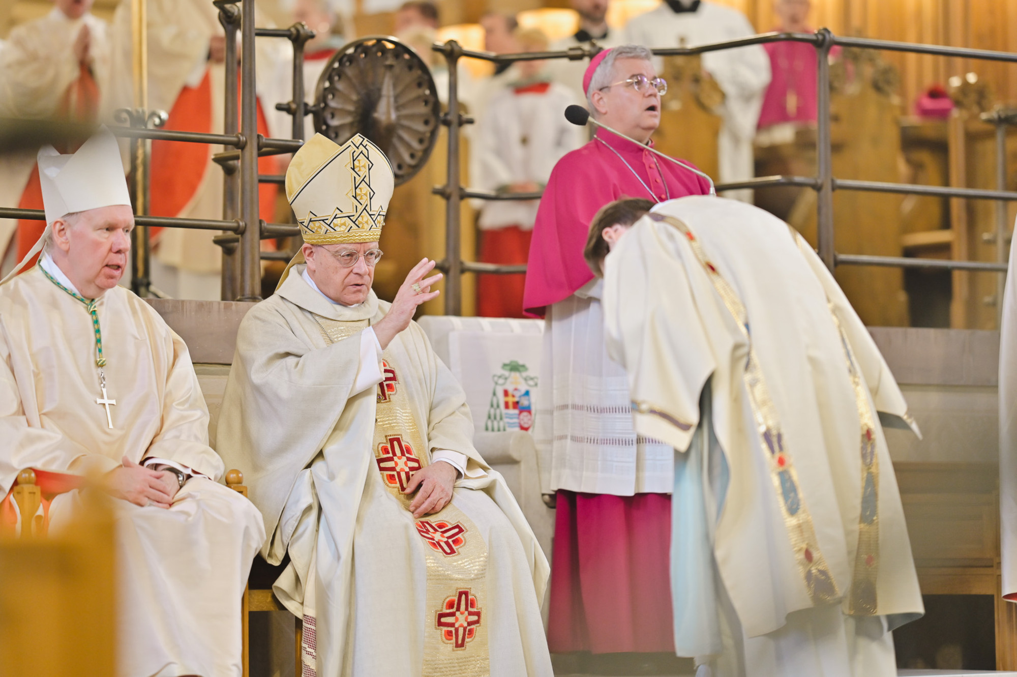 Weihbischof Matthias König blickt auf 40 Jahre im Dienst des Priestertums zurück. 40 Jahre, in denen wertvolle Erinnerungen entstanden sind. Nie habe er Tagebuch geschrieben und doch seien da weit zurückliegende Ereignisse, bei denen es sich anfühle, als seien sie „erst gestern gewesen“. In seiner Predigt nimmt Weihbischof König die Gläubigen, die sich anlässlich seines 40-jährigen Priesterjubiläums im Hohen Dom versammelt haben, mit auf die Reise durch die vergangenen Jahre. Hier, im Paderborner Dom, in dieser „wunderbaren, durchbeteten hohen Halle“, habe er drei Weihen empfangen: „Am 11. Februar 1984 die Diakonenweihe durch Weihbischof Hans-Leo Drewes. Am 25. Mai 1985 die Priesterweihe durch Erzbischof Johannes Joachim Degenhardt und – zusammen mit Weihbischof Manfred Grothe – am 5. Dezember 2004 die Bischofsweihe. Bei allen Weihen habe ich auf diesem Teppich gelegen, der offenbar über eine gute Qualität verfügt“, schmunzelt der Weihbischof und deutet auf den Teppich im Altarraum.