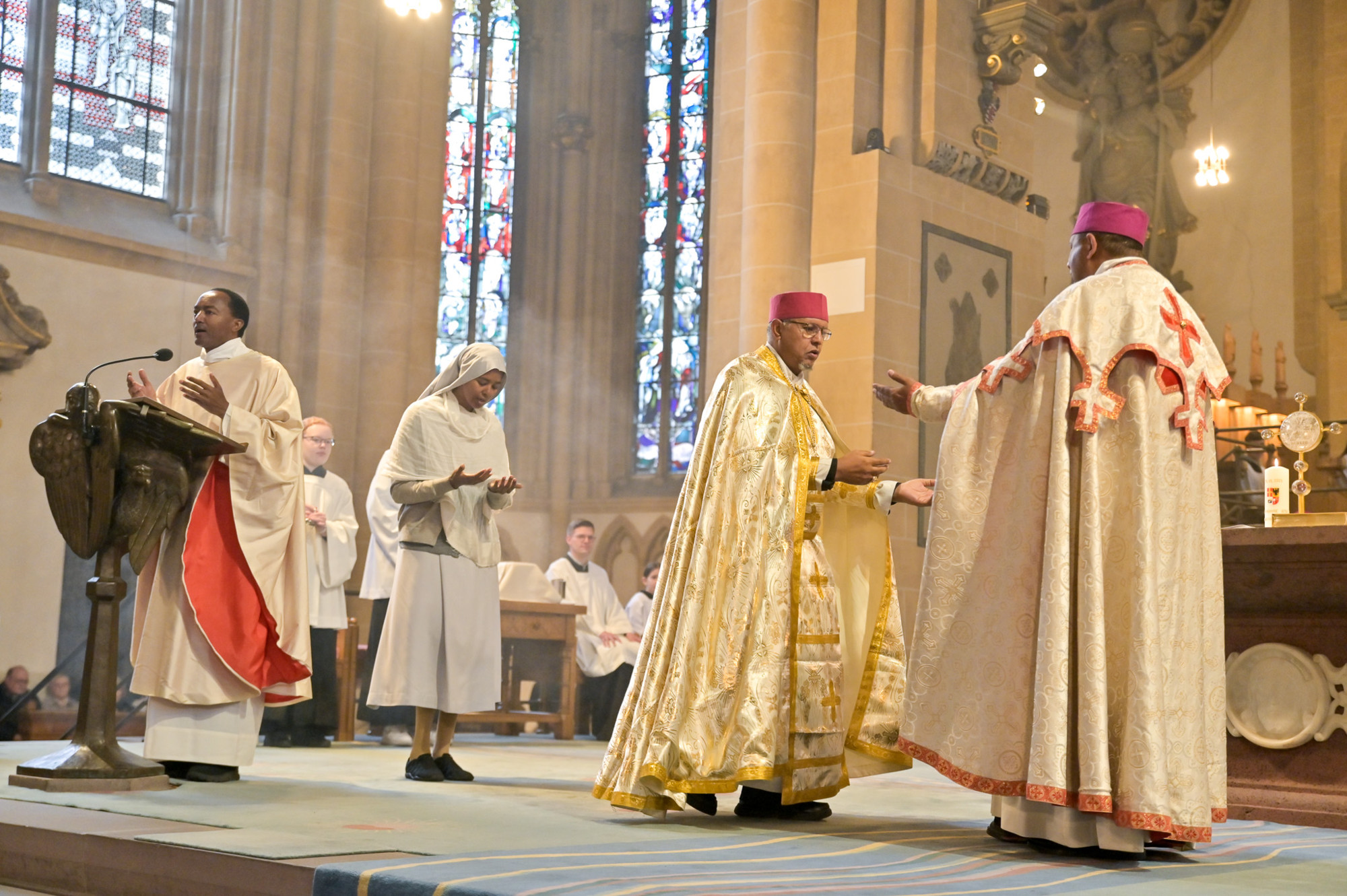 „Jetzt bist du Priester. Mal sehen, was alles auf dich wartet, was du jetzt erleben wirst, wie Gott dich weiterführt“, diese Gedanken begleiteten den Paderborner Weihbischof Matthias König am Tag seiner Priesterweihe. 40 Jahre später, am 25. Mai 2025, begeht er dieses besondere Jubiläum im Paderborner Dom. An jenem Ort, wo er 1985 durch Erzbischof Johannes Joachim Degenhardt ins priesterliche Amt eingeführt wurde, haben sich zu diesem Festtag seine Familienmitglieder, Freunde, geistliche und weltliche Weggefährten, und viele weitere Gläubige, versammelt. Auch eine Delegation aus Äthiopien ist angereist. Mit einem landestypischen Tanz zu Ehren der Gottesmutter Maria setzt sie zum Abschluss des Gottesdienstes ein berührendes Zeichen weltkirchlicher Verbundenheit.