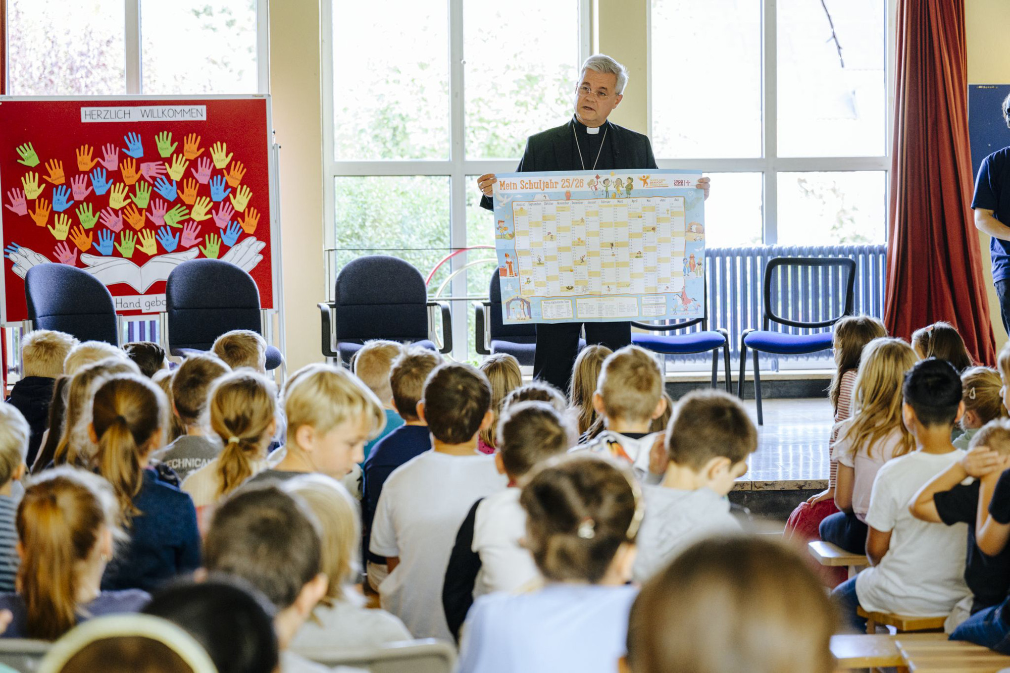 Schulstartaktion: Erzbischof Dr. Udo Markus Bentz besucht Bruno-Grundschule in Soest.