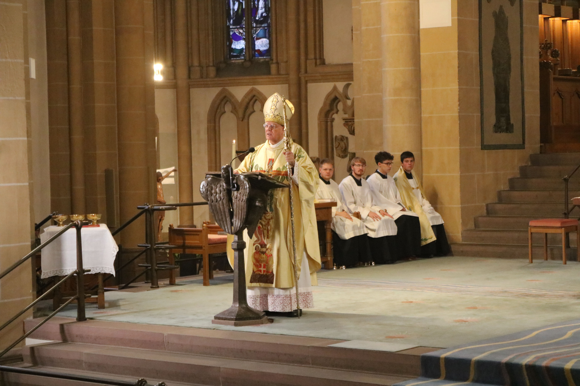 Anschließend baute der Weihbischof eine Brücke zum Heiligen Liborius: „Wie oft in der Geschichte, die er uns als unser Schutzpatron begleitet hat, hat das Bistum auf der Kippe gestanden: Weltliche Mächte wollten es einverleiben, Krieg hätte es beinahe zerrieben, Zerstörung und Verwüstung haben es heimgesucht, zuletzt im 2. Weltkrieg. Aber die Menschen haben das durch ihren Aufbauwillen ausgeglichen! Es ist keine billige Vertröstung, wenn wir genau darauf schauen und dann umso mehr vertrauen, dass unser heiliger Schutzpatron uns nicht im Stich lassen wird.“