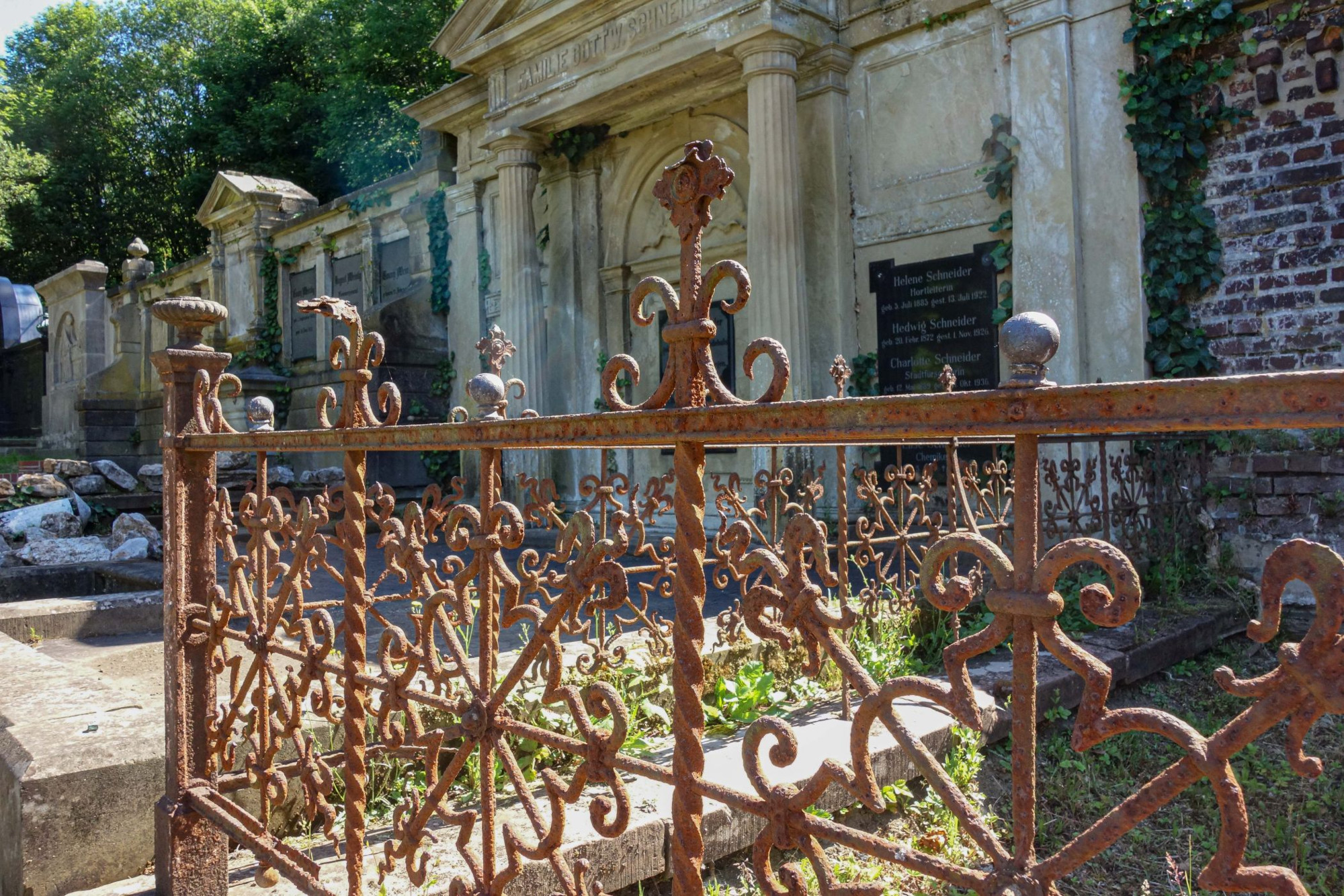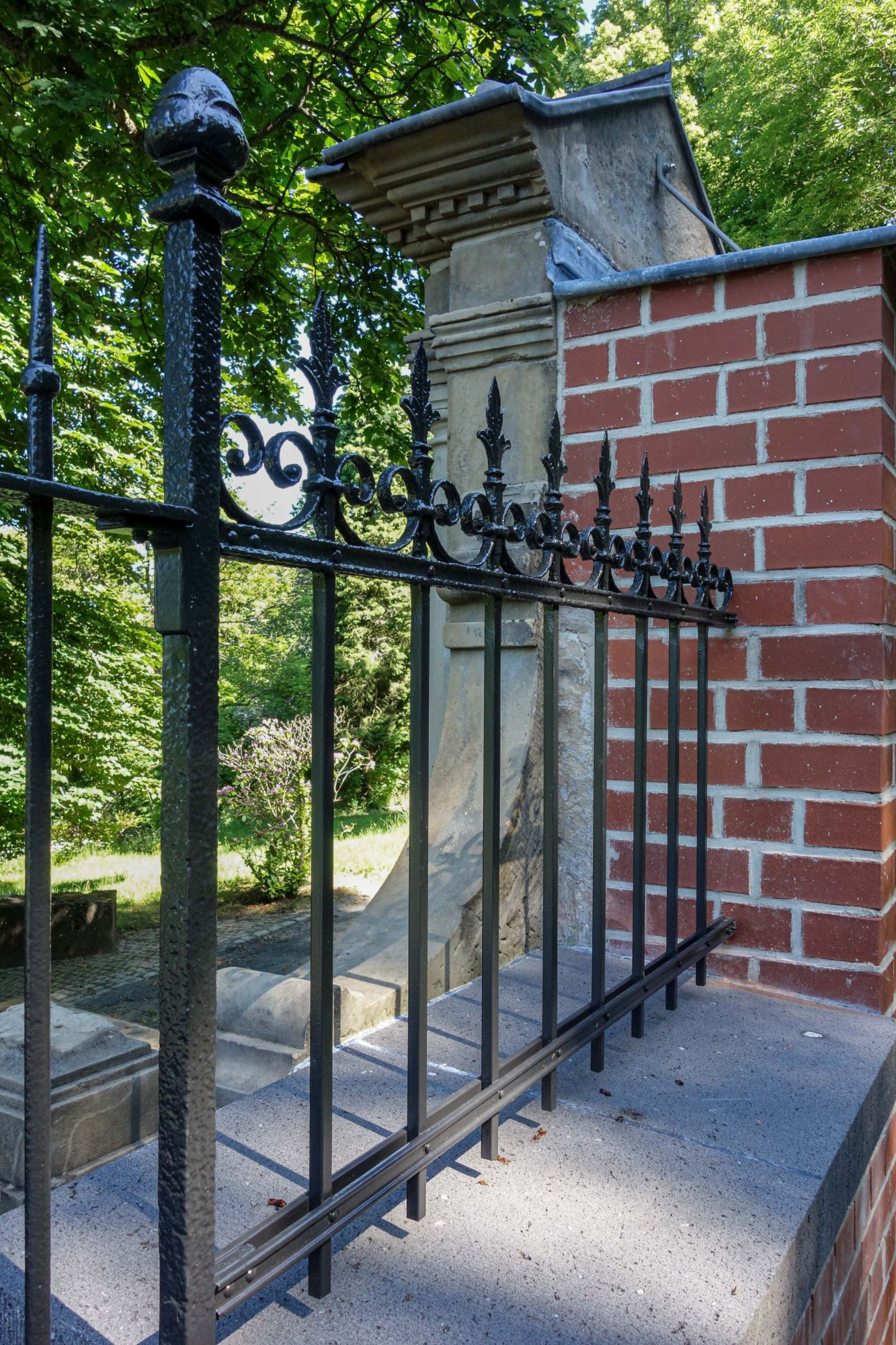 Nach der Sanierung der damals einsturzgefährdeten Grabstätte Luyken im Jahr 2014 waren die Planungsgespräche für eine systematische Sanierung des Gruftenweges wieder konkret geworden. „Im Jahr 2016 klärten restauratorische Befunduntersuchungen für Stein und Metall das tatsächliche Schadensausmaß“, erinnert sich Dick. „Die entstandenen Gutachten waren eine wichtige Grundlage für die Konzeption der Maßnahmen und halfen bei der Einwerbung von Fördergeldern.“