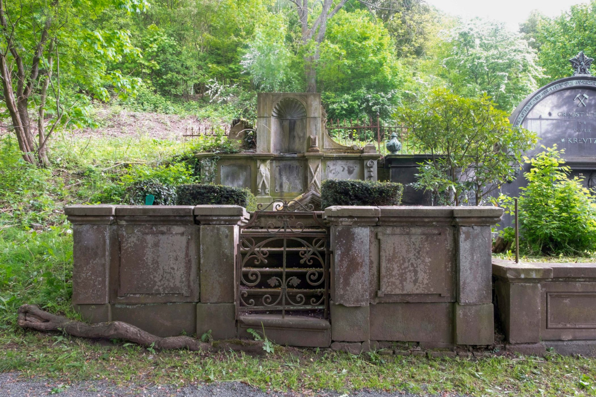 Dabei ist der Gruftenweg aus ihrer Sicht ein echtes Schmuckstück: Als er im letzten Viertel des 19. Jahrhunderts angelegt wurde, begrenzte er den Friedhof am Lindenberg zum Südosten hin. Diesen äußeren und höchstgelegenen Teil von etwa 285 Metern Länge reservierte die Stadt Siegen für Erbbegräbnisse. „Bei einem damals sehr hohen Preis zwischen 100 und 200 Mark pro Parzelle von 1,35 Metern Breite konnten sich nur sehr wohlhabende Familien der Siegener Oberschicht hier eine Ruhestätte leisten“, weiß Dick. „Zwischen 1882 und 1913 entstanden insgesamt 60 teils sehr aufwändig gestaltete Erdbegräbnisstätten und Gruften. In ihrem beeindruckenden Nebeneinander zeugen sie noch mehr als ein Jahrhundert später eindrücklich vom Wohlstand der Stadt im Industriezeitalter und dokumentieren den selbstbewussten Repräsentationsanspruch der Siegener Bürger.“