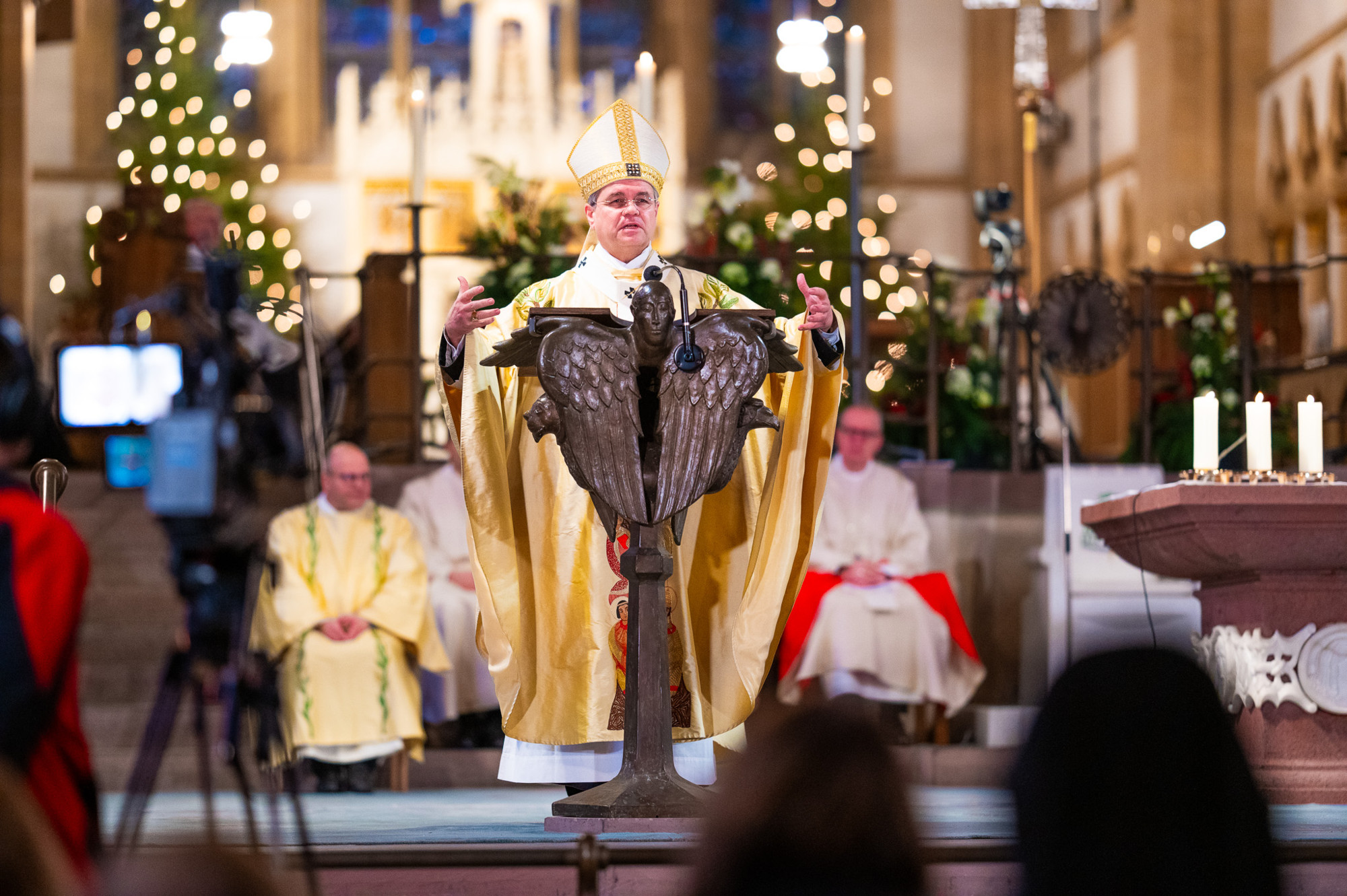 Das Heilige Jahr der Hoffnung könne vor allem in Zeiten des Krieges und angesichts unfassbarer Nachrichten wie derer aus Magdeburg wie ein „trotziges ‚jetzt erst recht‘“, anmuten, gibt Erzbischof Dr. Udo Markus Bentz zu Beginn seiner Predigt zu bedenken. „Aber: Eine Gesellschaft, die keine Kraft zur Hoffnung aufbringt, hat keine Zukunft. Kirche, die nicht hofft, verfehlt ihre Sendung“, erklärt der Erzbischof weiter. Es brauche dabei keinen billigen Optimismus. Das sei naiv. Es brauche keine vertröstenden Beschwichtigungen. Hoffnung sei anspruchsvoll, so Dr. Bentz weiter.