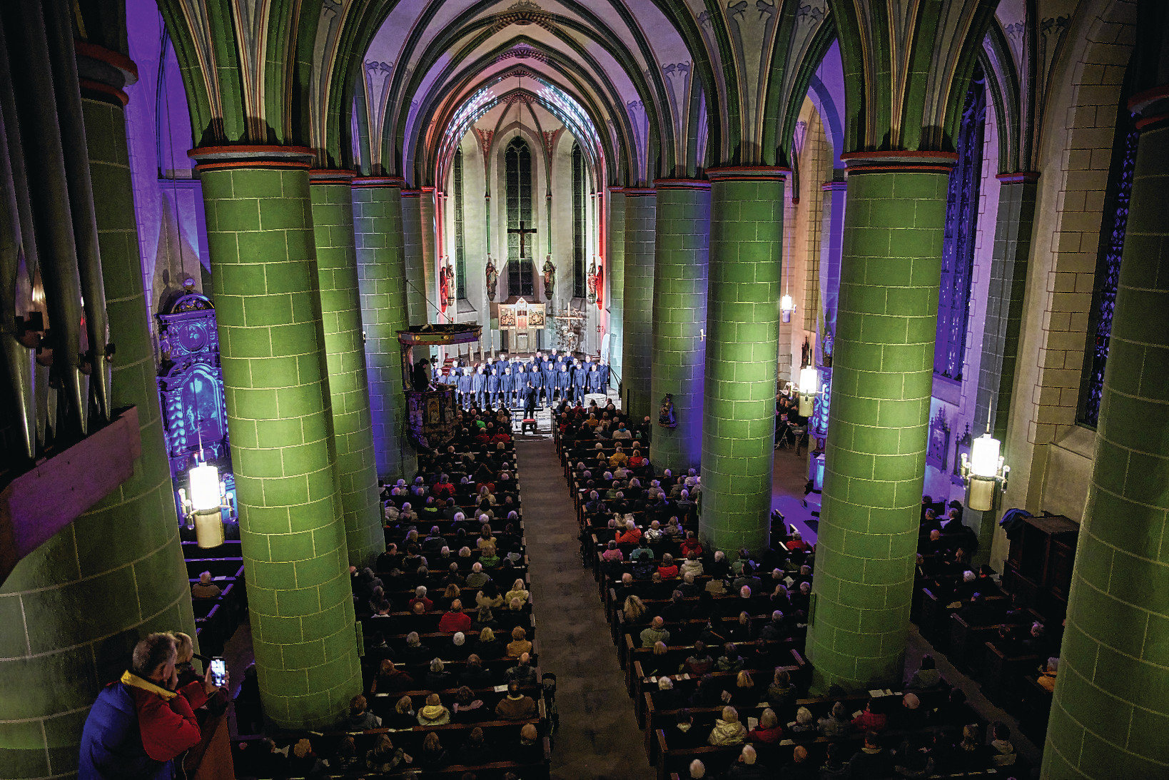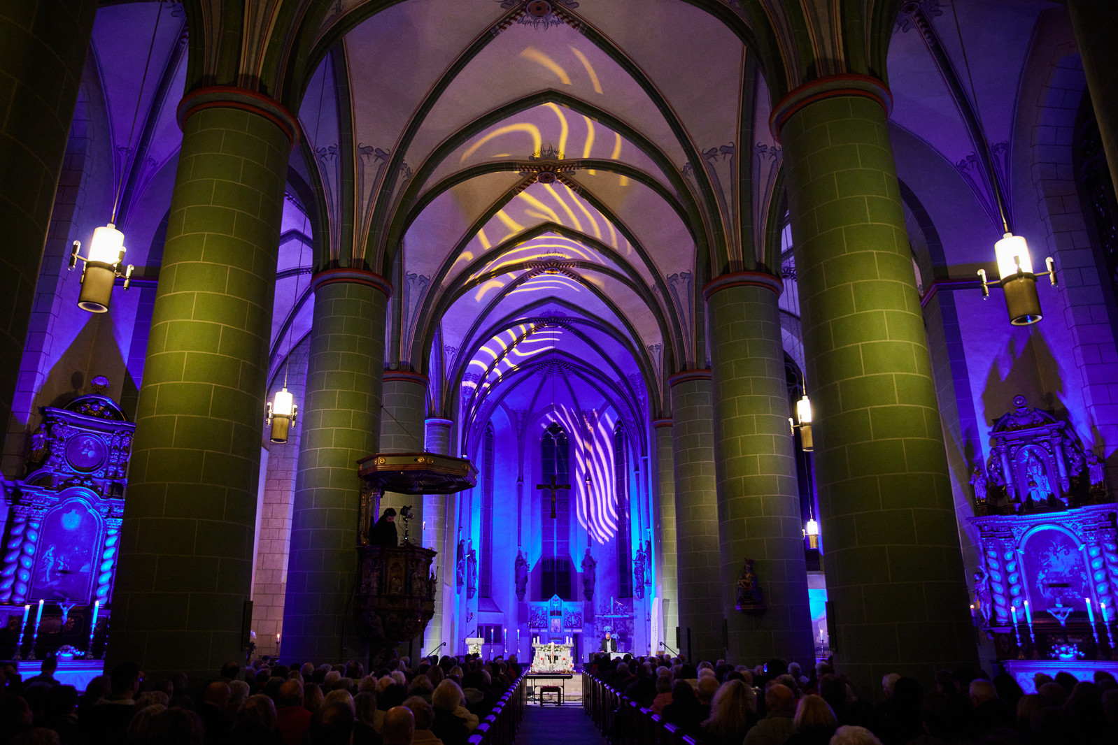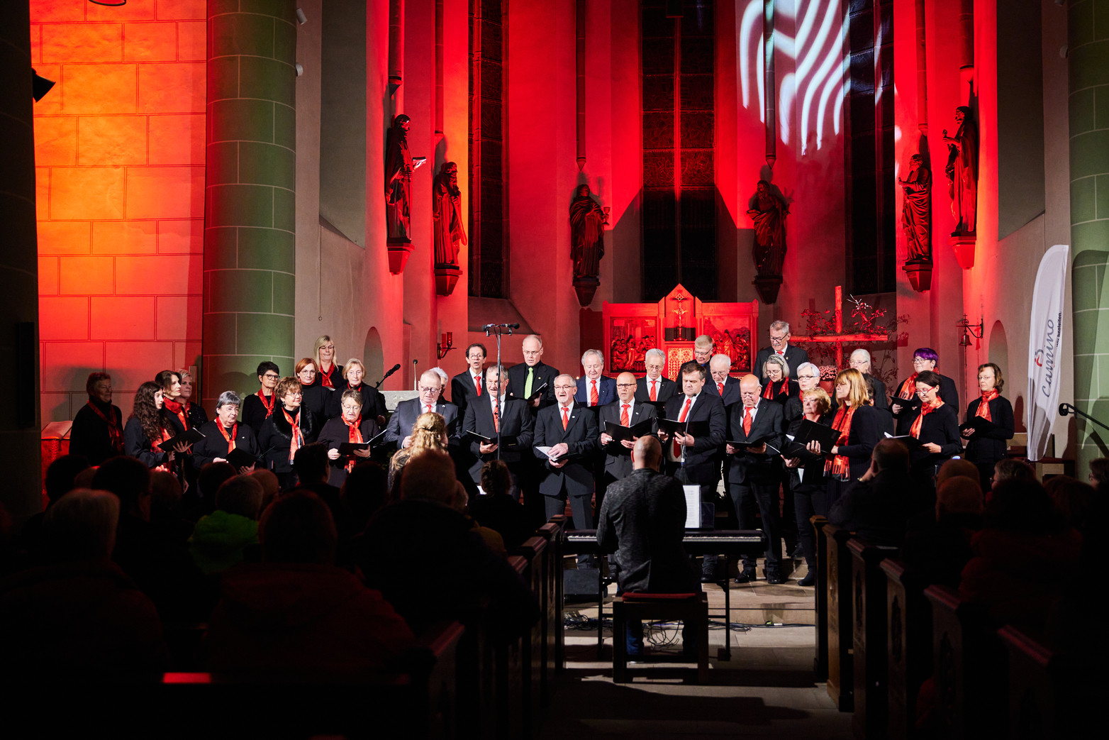Im Schein kunstvoller Lichtinstallationen und umrahmt von der Vielfalt der musikalischen Beiträge sorgten heimische Künstler und Musiker für eine eindrucksvolle Darbietung. Auf der Bühne vereinten sich der MGV SAUERLANDIA, der Chor HEL-Canto e.V., der gemischte Chor Cäcilia Attendorn e.V. 1873, das Vocal Ensemble Stilmix sowie die Solisten ChrisPiano und Michael Wurm zu einem harmonischen Klangbild, welches das Publikum ergriff.
