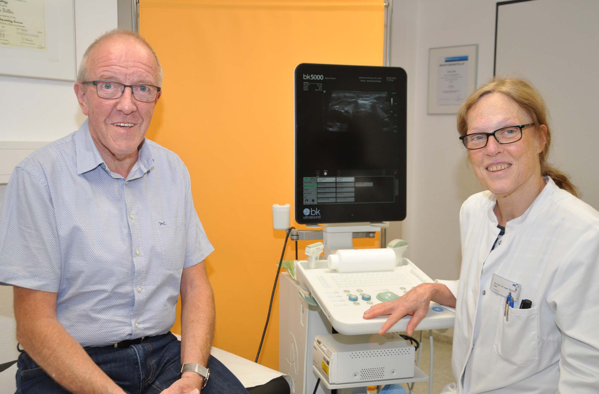 Sie erklärt ihm ruhig und sachlich, was auf den Bildern zu sehen ist: „Sie haben einen Tumor an ihrer Bauchspeicheldrüse, außerdem eine Gallenblasenentzündung. Gegen die Entzündung bekommen sie zuerst eine intravenöse Antibiotikatherapie.“ Während Wolfgang Rabenstein die Diagnose gefasst verarbeitet, gerät seine Frau Renate an die Grenzen ihrer Belastbarkeit. „Das war schlimm, wie es meiner Frau den Boden unter den Füßen wegzog. Ich bin ein Kämpfer, ich stecke niemals den Kopf in den Sand.“ Diese Haltung des Patienten hilft letztlich beiden Ehepartnern. Zehn Tage später hat das Antibiotikum seine Wirkung gezeigt, die Entzündung an der Gallenblase ist weg, es gibt ein weiteres Gespräch mit der Chefärztin, denn die erste OP steht bevor: „Um sicher zu sein, welches Ausmaß und welche Beschaffenheit der Tumor hat, müssen wir ihn uns anschauen und eine Probe nehmen“, erklärt Diller dem Patienten.
