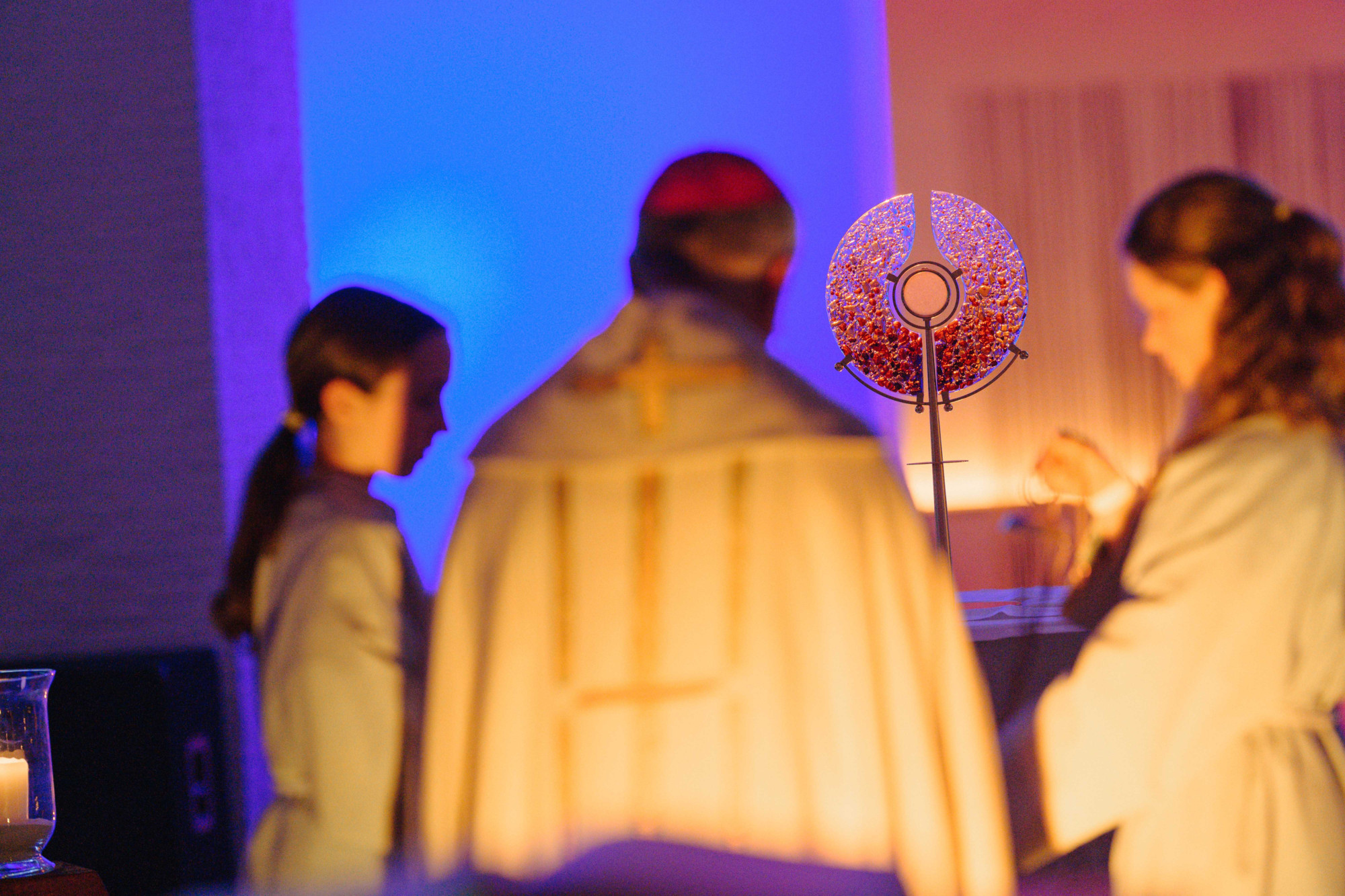 Ein fester Bestandteil des YOUNG MISSION-Weekends ist die Vigilfeier am Samstagabend mit Anbetung des Allerheiligsten und Stille. Eine besondere Atmosphäre mit Licht und Musik helfe auch ihm, um zur inneren Ruhe zu kommen, so Erzbischof Dr. Bentz: „Dann ist es für mich wichtig geworden, mir weniger innerlich Gedanken zu machen, sondern wahrzunehmen, wie ich da bin. Anbetung ist die Gegenwart Gottes. Also versuche ich zu spüren, wie ich gerade gegenwärtig bin.“
