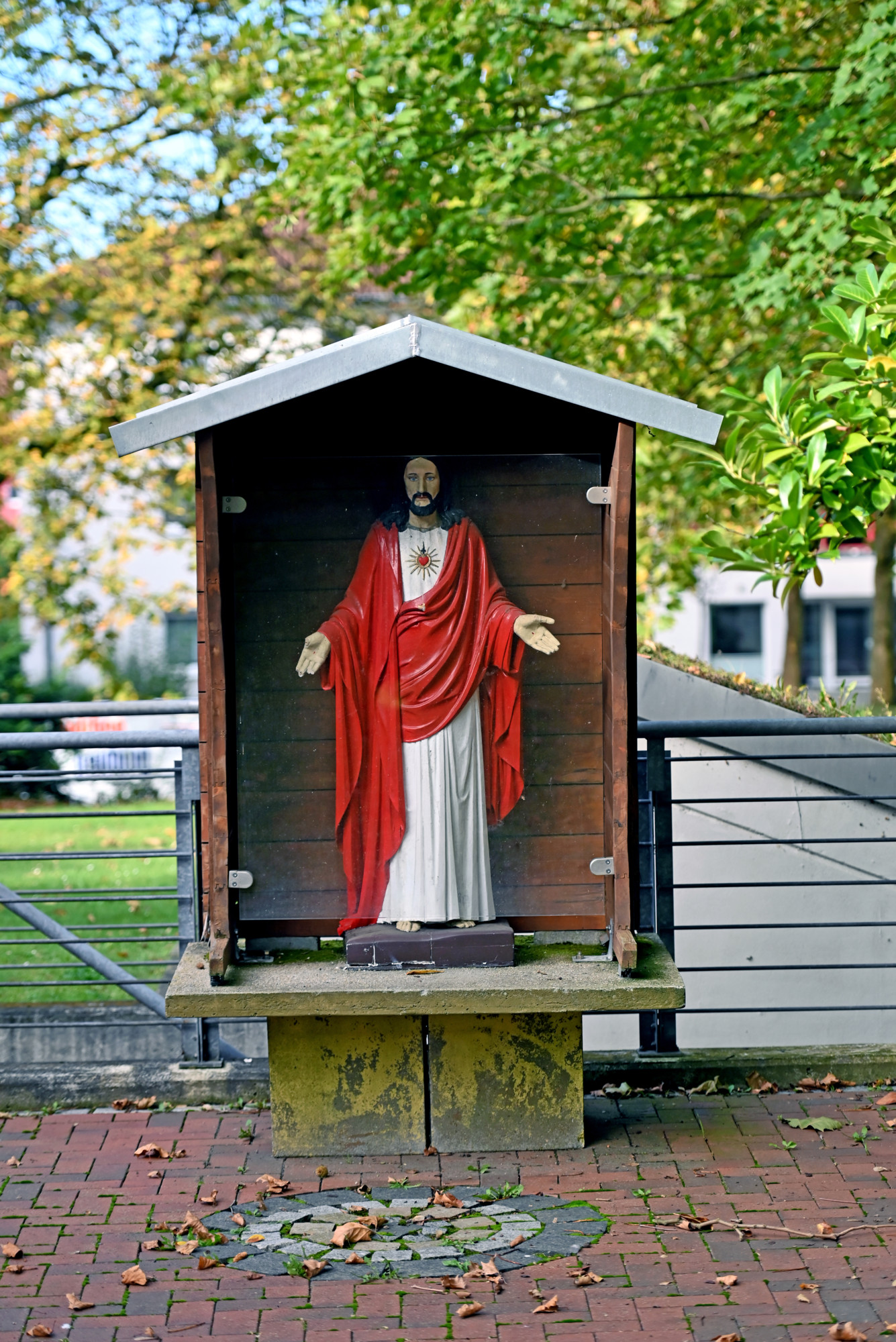 Gillich bleibt vor einer Herz-Jesu-Figur im Garten stehen. „Caritas-Pfarrer Ortwald hat sie gesegnet.“ Immer wieder verweilen Bewohnerinnen und Bewohner des Altenzentrums, aber auch Besucher aus der Nachbarschaft vor dem Ensemble. Sie finden Ruhe, auch wenn Religion oder Glaube in der alltäglichen Arbeit keine große Rolle spiele. „Die Angebote sind offen für alle“, betont Gillich. Das gelte auch für alle Aktivitäten mit den Kirchengemeinden, die wichtige Akteure vor Ort seien. „Den katholischen Glauben würde ich nicht so sehr in den Vordergrund rücken. Da liegt kein Fokus drauf. Wenn wir etwas zusammen mit der Kirche machen, geht es immer um Offenheit.“