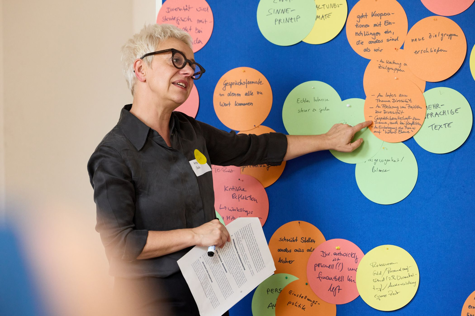 Referentin Dr. Marion Hesse-Zwillus aus Köln warb für einen ganzheitlichen Blick auf Inklusion. Ein Museumsbesuch beginne nicht erst mit dem Betreten des Hauses und ende nicht beim Verlassen. Vielmehr müsse die Idee von Inklusion sämtliche Bereiche eines Museums durchdringen: von barrierefreien Piktogrammen auf Internetseiten und Flyern, Schulungen für Mitarbeitende zur inklusiven Kommunikation bis zu einfachem Zugang für Rollstuhlfahrerinnen und -fahrer im Museumsshop.