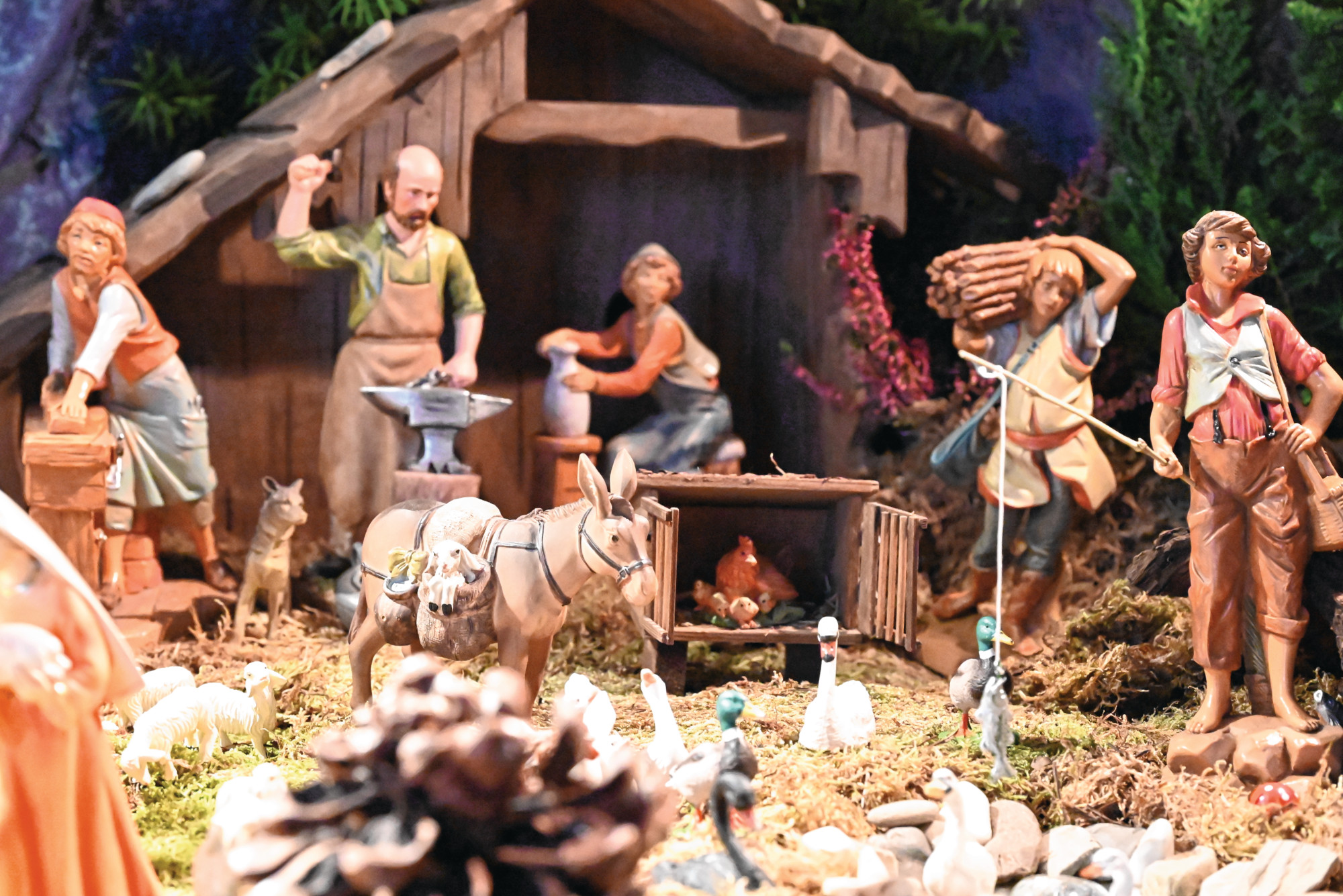 Und auch die Krippe selbst erzählt Geschichten. Während im Stall der Sohn Gottes zur Welt kommt, hüten Schäfer ihre Tiere. In einer anderen Ecke bearbeitet ein Schmied Metall. Frauen stehen um einen Brunnen und schöpfen Wasser. Das Leben geht seinen gewohnten Gang, obwohl gerade etwas Unglaubliches geschieht, das die Menschen auch gut 2 000 Jahre später noch feiern.