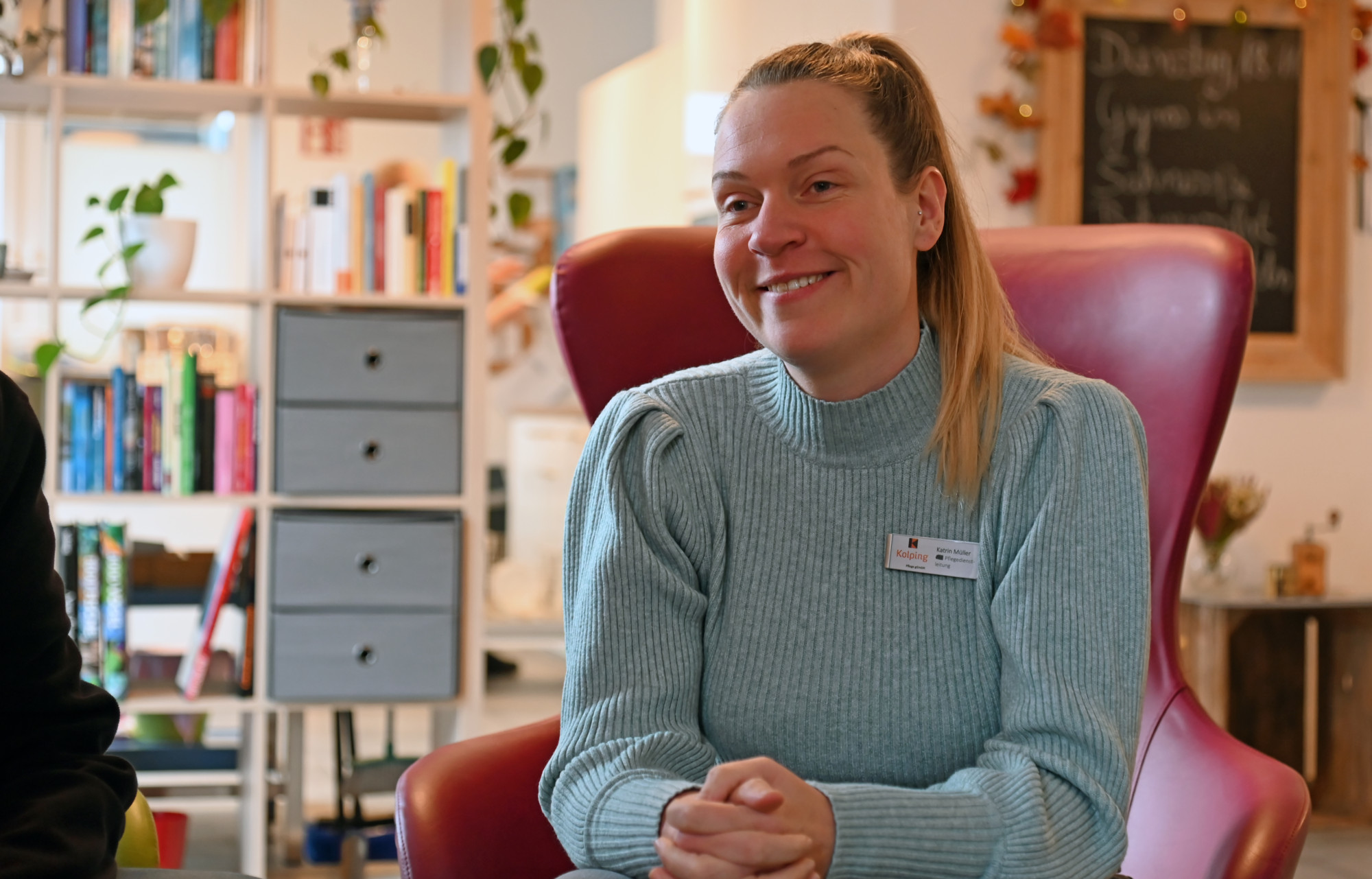 „Vier Damen sitzen nach dem Essen immer hier und spielen Mensch-ärgere-dich-nicht“, sagt Katrin Müller und deutet auf vier Sitzplätze an einem der großen Esstische. Das sei den Frauen heilig, ihr eigenes Ritual, das sie liebevoll pflegen.