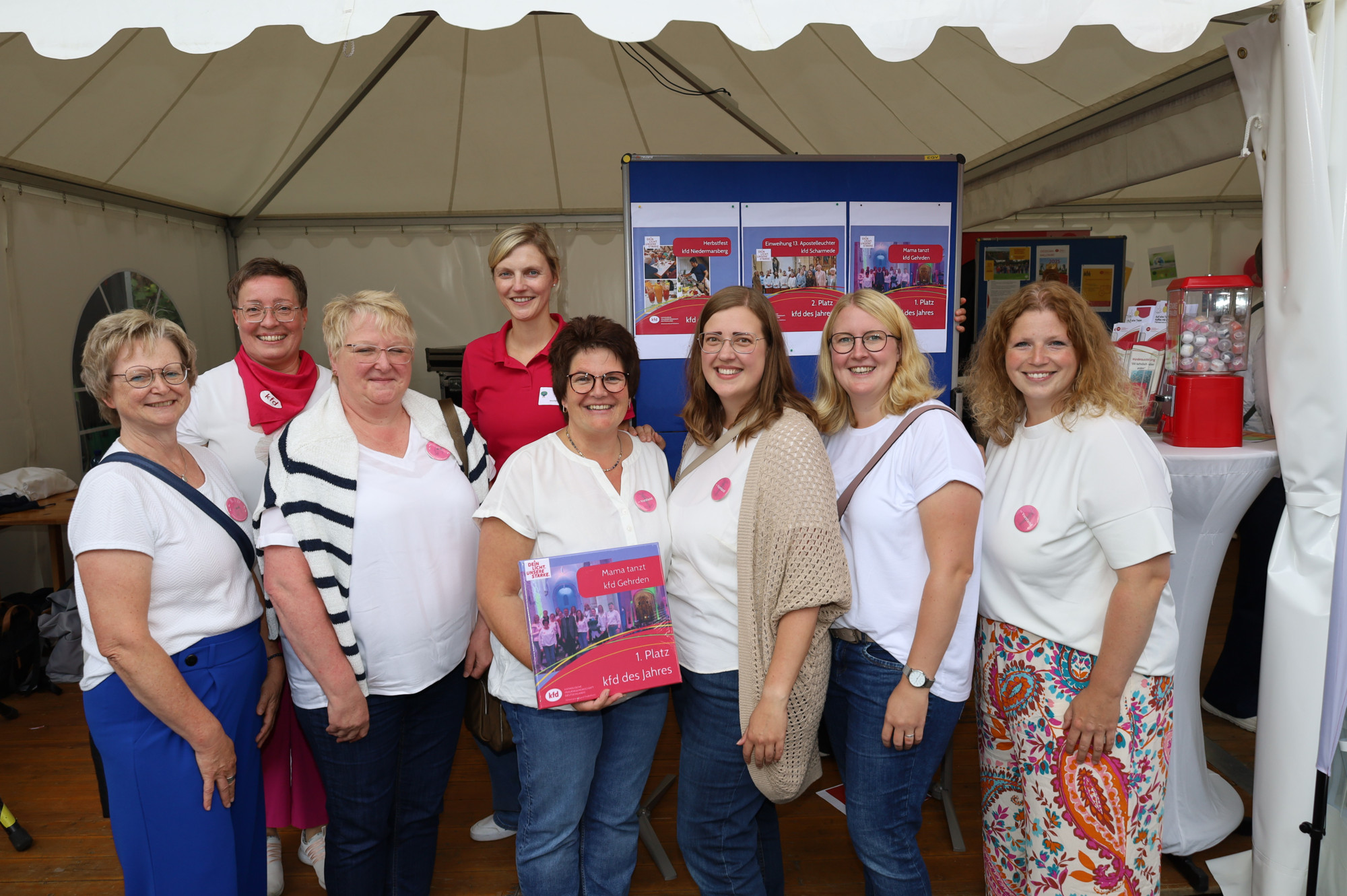 Der Jubel auf dem Platz der Verbände war riesig, als die Diözesanvorsitzende Monika Bunsen und Geschäftsführerin Silvia Stiewe die Siegerinnen des Online-Votings zur kfd des Jahres verkündeten. Bei der Umfrage habe es mehr als 1.000 Abstimmungen gegeben, berichteten die beiden. Über die ersten drei Plätze beim Wettbewerb „kfd des Jahres“ freuten sich die Ortsgruppen aus Gehrden, Scharmede und Niedermarsberg.