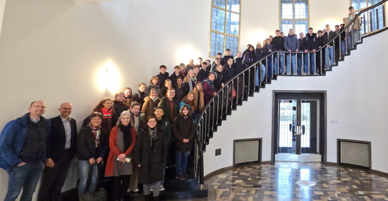 50 Schülerinnen und Schüler aus den Religionskursen der Jahrgangsstufe 10 des Gymnasiums Theodorianum besuchten zusammen mit ihren Lehrerinnen Alexia Rebbe und Birgit Düker, sowie ihrem Lehrer Dr. Stefan Klug die SchulUni.Theologie der Theologischen Fakultät Paderborn. Professor Dr. Dr. Bernd Irlenborn, Lehrstuhlinhaber für Geschichte der Philosophie und Theologische Propädeutik, und Dipl.-Theol. Jessica Bohn, Referentin am Rektorat, begrüßten die Schülerinnen und Schüler in Hörsaal 2 der Fakultät.