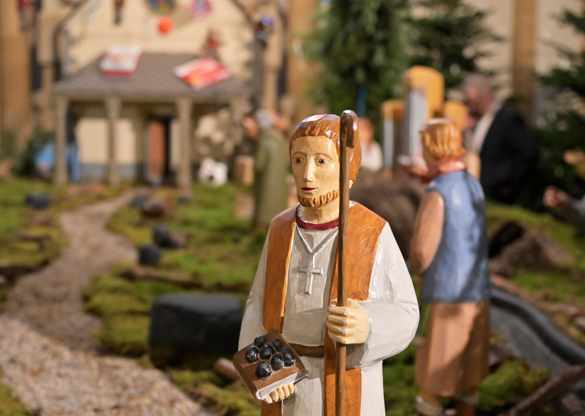 Die Figuren der Paderborner Dom-Krippe sind alle handgearbeitet und deshalb sehr wertvoll. Der heilige Liborius wird in den nächsten Wochen von vielen besucht, von Kindern bestaunt und sicher in der Krippe des Hohen Doms eine herzliche Aufnahme finden. Über die Entstehungsgeschichte der Domkrippe berichten Flyer in der Nähe des Aufbaus. Es werden auch künftig neue Figuren hinzukommen: „Ich bin stolz, dass unsere Domkrippe in eine Abbildung der Gesellschaft hineingewachsen ist“, sagte Dompropst Monsignore Joachim Göbel.