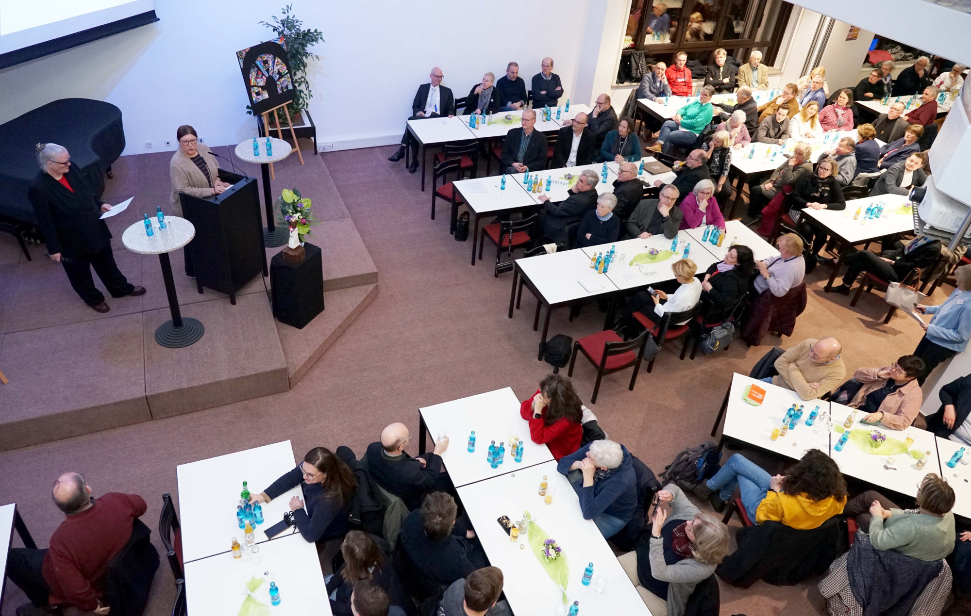 An den Lichtmessgottesdienst schloss sich der „Abend der Begegnung“ im Katholischen Centrum an. Dazu wurden Mitglieder der Pfarrgemeinderäte und Kirchenvorstände, pastorale Mitarbeitende, die Verwaltungsleitungen sowie Vertreterinnen und Vertreter von Verbänden und Einrichtungen von Gundula Wiese und Annette Weber, den Sprecherinnen des Katholischen Stadtgremiums, begrüßt.