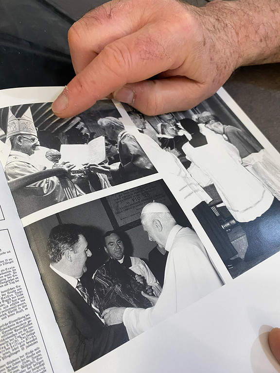 In seinem Buch finden sich viele Fotos seiner Begegnungen mit den Stellvertretern Christi auf Erden. „Naja, da waren meine Haare noch nicht so grau“, zeigt er schmunzelnd auf ein Bild, das ihn zusammen mit Benedikt XVI. zeigt. Der Papst aus Deutschland sei ein sehr feiner Mensch gewesen. „Einmal war ich bei ihm, damit er ein großes Bronze-Medaillon segnet, das wir bei einem Künstler anlässlich des 25. Todestags von Paul VI. in Auftrag gegeben haben“, berichtet Maurizio. „Einer seiner Mitarbeiter wollte uns loswerden, aber der Papst hat weiter freundlich Fragen gestellt, so waren wir eine gute Viertelstunde bei ihm.“