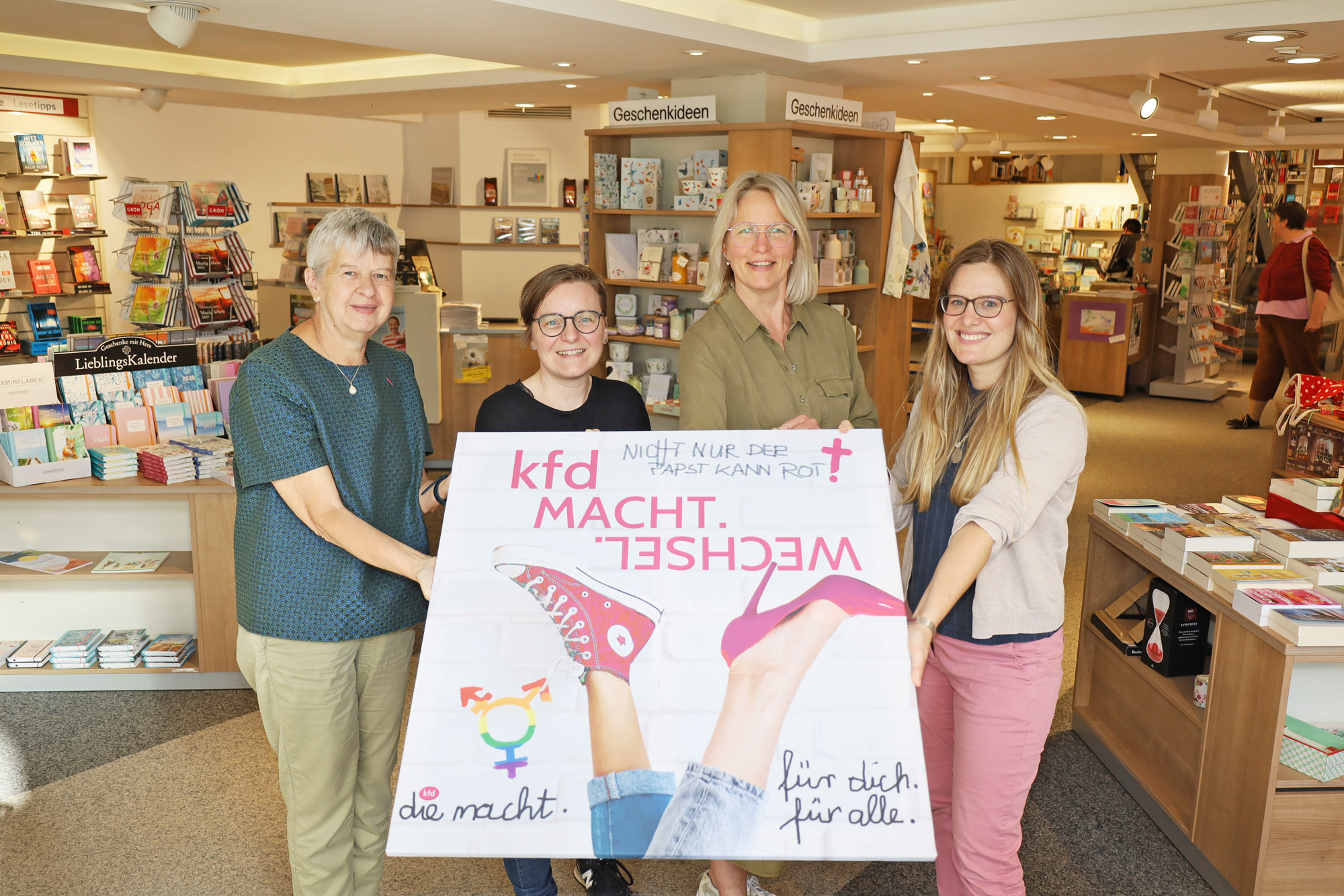 Die Ausstellung des Diözesanverbands zum Thema „kfd: katholisch – aber anders“ ist bis Anfang September in der Paderborner Bonifatius Buchhandlung zu sehen. Es geht unter anderem um „Machtwechsel, Demokratie, Rollenklischees und das Klima als Herausforderung“.