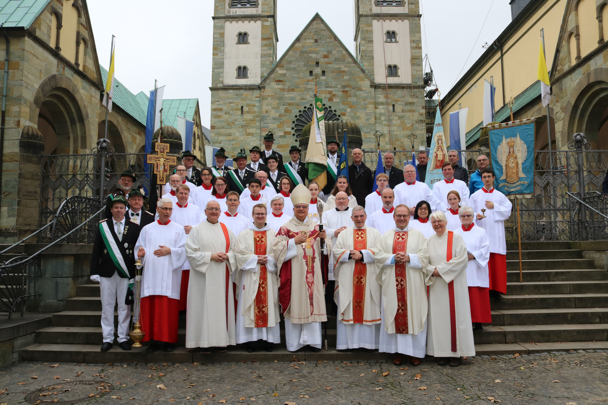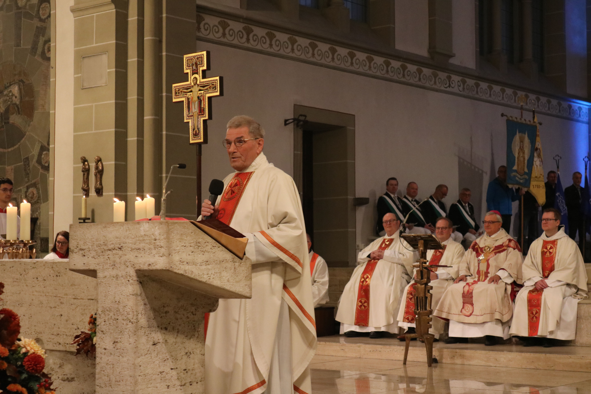 Zuvor schlug Bischof Dr. Karl-Heinz Wiesemann in seiner Predigt den Bogen von der Marien- zur Heiligenverehrung innerhalb der katholischen Kirche: „Unsere Heiligen sind vielfältig und ganz unterschiedliche Charaktere. Sie stammen aus allen sozialen Schichten – vom Adligen bis zum Sklaven – doch in aller Mannigfaltigkeit eint sie die Gefolgschaft Christi. Die Heiligen bilden im übertragenen Sinn einen Chor der Vielfalt.“