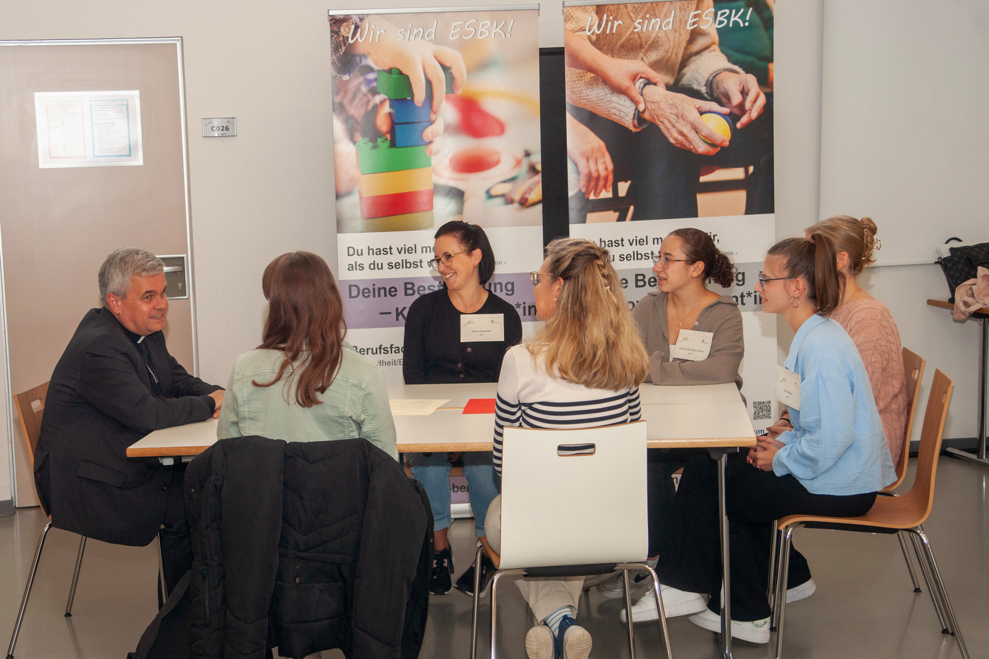 Sehr differenziert und anschaulich waren die Gespräche mit angehenden Erzieherinnen und Erziehern, die Einblicke über die Gestaltung religionspädagogischer Angebote mit Kindern und Jugendlichen gaben. Hier offenbarte Erzbischof Bentz seine kurze, aber nachdrücklich in Erinnerung gebliebene Zeit als Gemeindeseelsorger, in der er sehr gerne in Kitas oder Grundschulen mit Kindern über Gott und die Welt ins Gespräch kam.