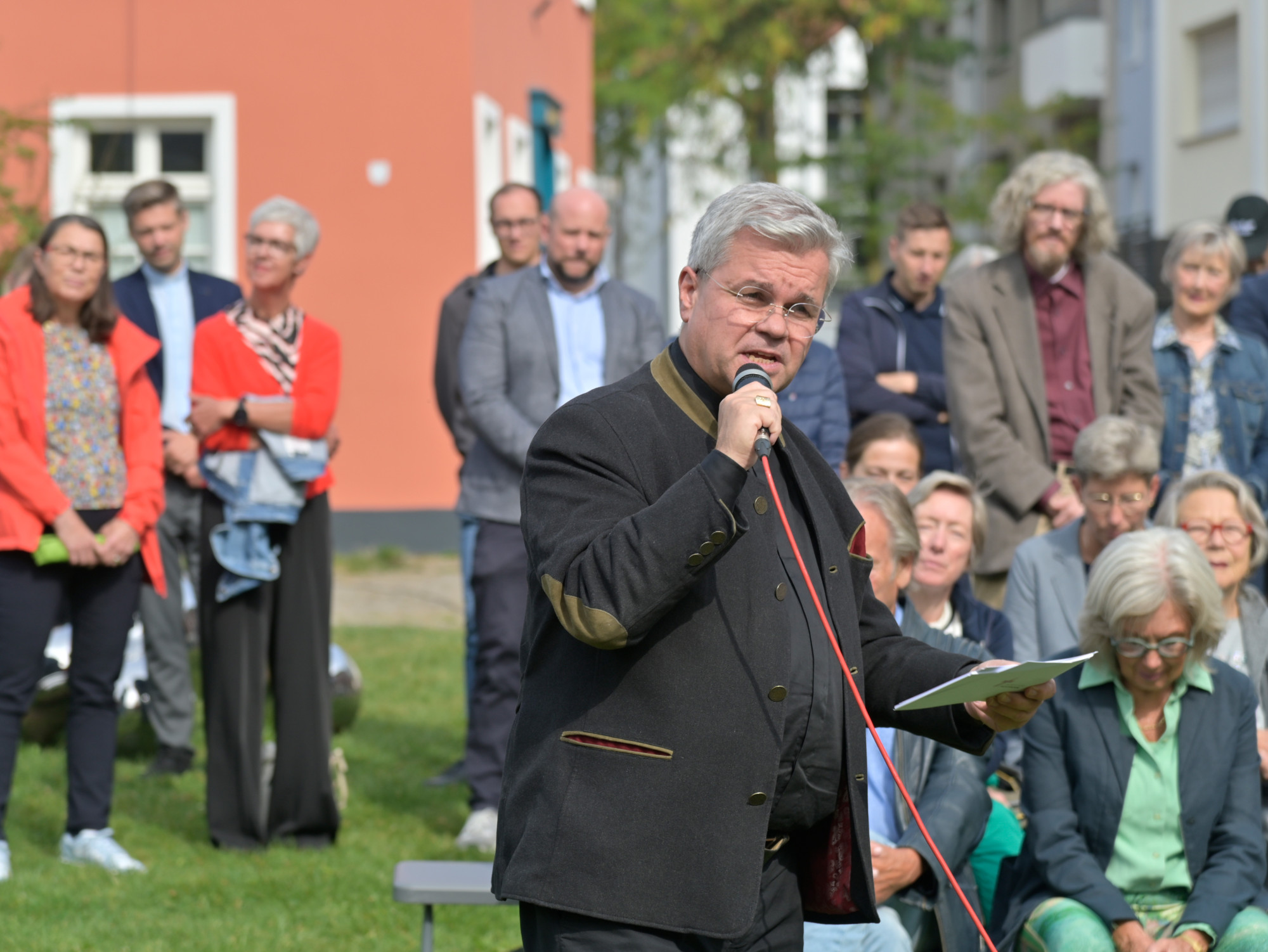Künstler Manfred Webel, der in der Einführung alle „Freunde der Pader“ begrüßt hatte, dankte Erzbischof Dr. Udo Markus Bentz für „den großen thematischen Bogen“ und lud alle Teilnehmenden nach dem Impuls zum Dialog und zur Begegnung ein.