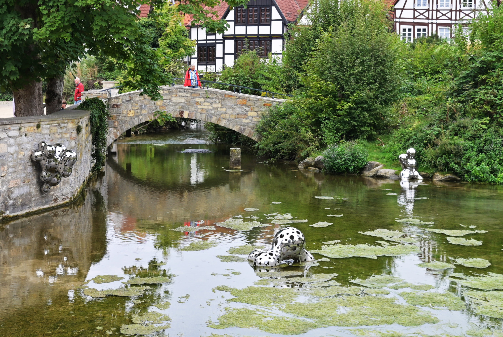 Erzbischof Dr. Udo Markus Bentz hat einen religiösen Impuls an der Dielenpader nahe der Paderborner Stadtbibliothek gehalten. Die Paderquellen, Ursprung und Herz der Stadt Paderborn, sind gemeinsam mit dem ganzen Fluss derzeit im Rahmen der Reihe „Tatort Paderborn“ Schauplatz für Kunst. In der Kunstaktion „be Pader, my friend“ laden die PaderBubbles des Paderborner Bildhauers Manfred Webel dazu ein, der Vielschichtigkeit der Paderquellen nachzuspüren – der Paderborner Erzbischof tat dies vor Ort mit einem religiös-spirituellen Mittags-Impuls und verband Gedanken zu Schöpfung, Religion und Kunst.
