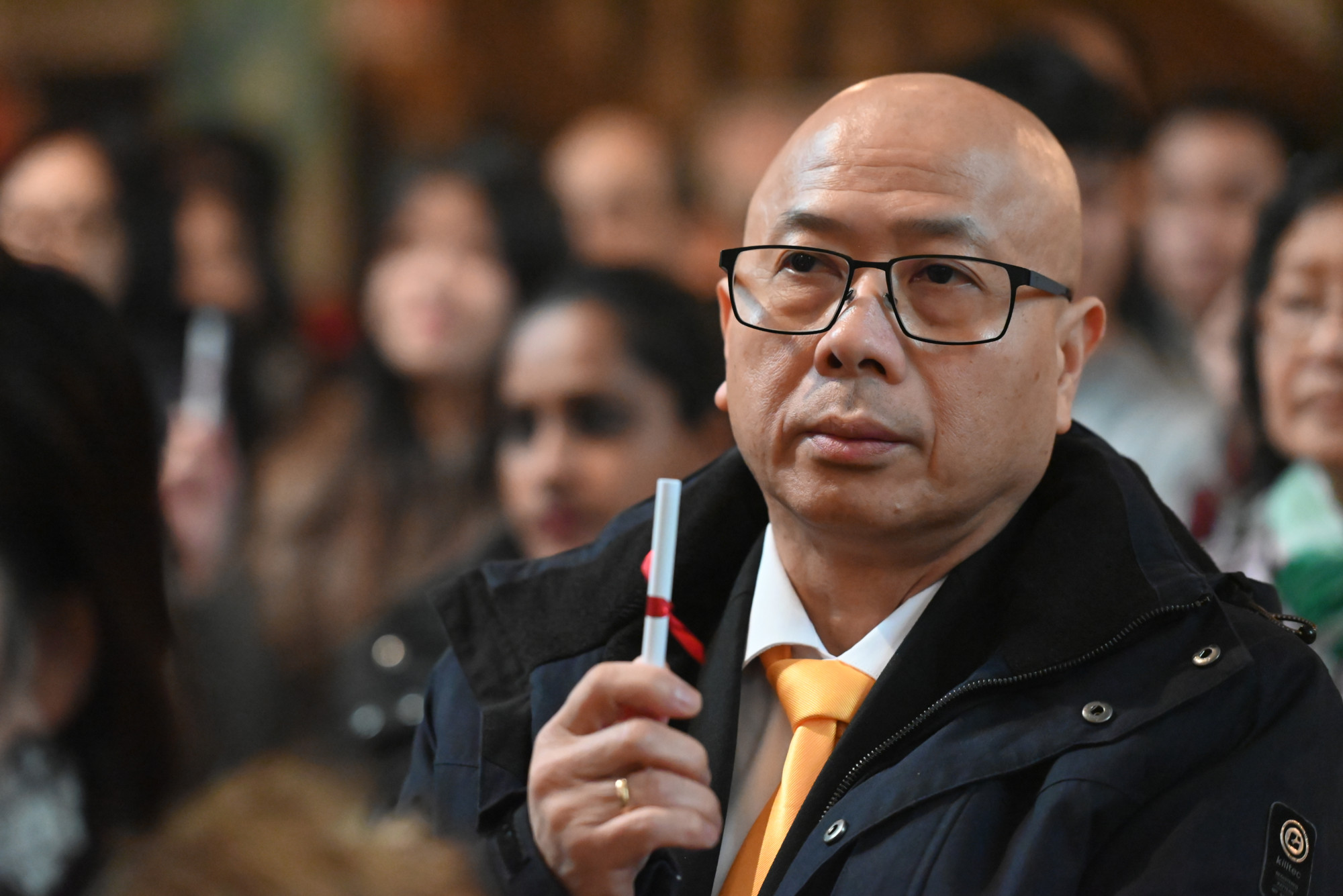 Markant sind die gelben Blumen, die den Altarraum schmücken. „Sie heißen Hoa Mai und blühen im Frühling. Die Blumen stehen für neues Leben“, sagt Bruder Chi Thien. Bekannter seien Kirsch- oder Pfirsichblüten als Symbol für Neubeginn nach dem Winter. „Die blühen im Norden, Hoa Mai im Süden Vietnams. Die meisten Leute hier stammen aus dem Süden“, erklärt der Seelsorger, der 1983 mit seinem Vater als politisch Verfolgter nach Deutschland floh. Viele, die mitfeiern, dürften ein ähnliches Schicksal teilen. Doch das ist kein Thema, heute dominiert die Freude.